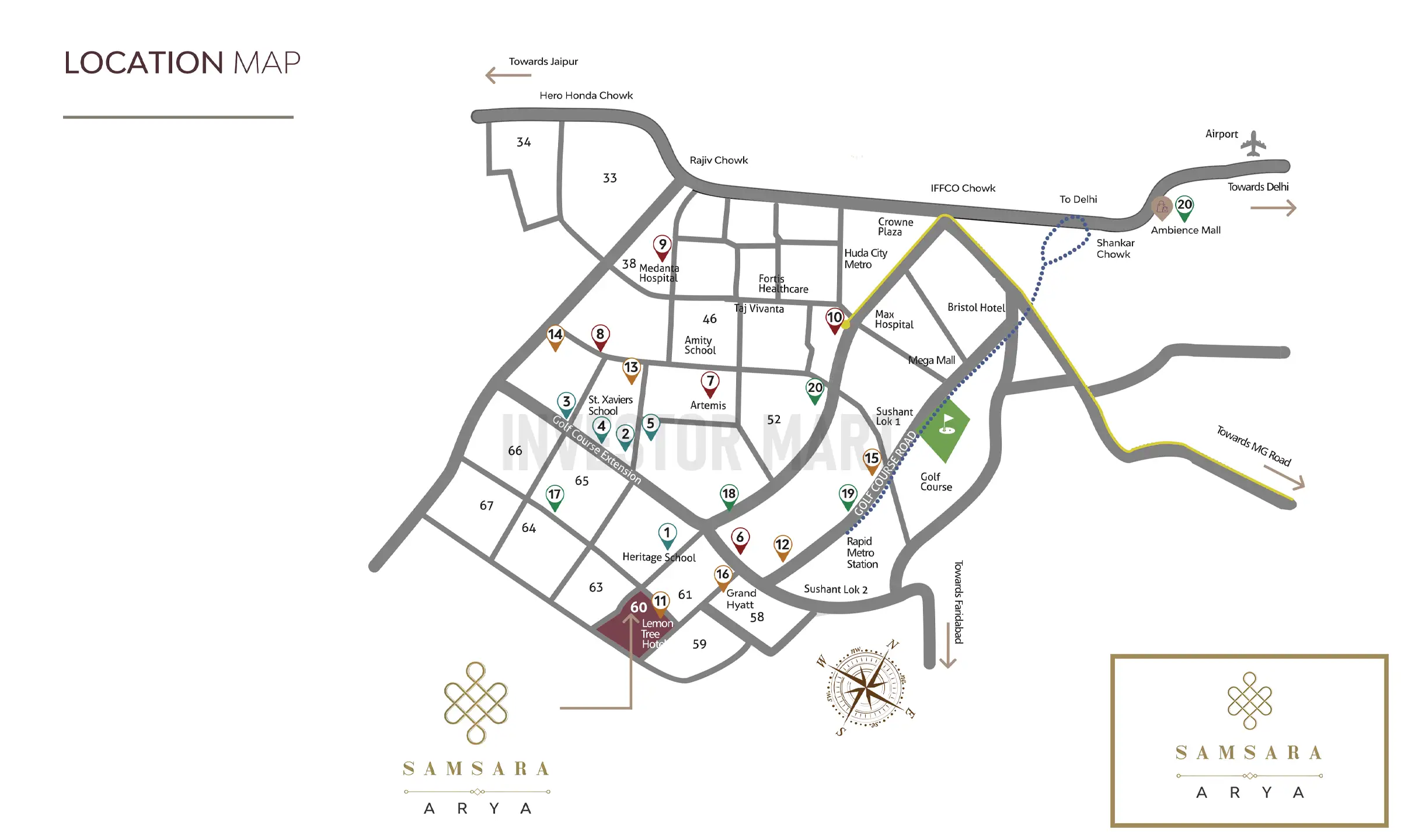 Located in the well-connected Sector 60 of Gurgaon, Adani Samsara M Block offers residents a prime location with excellent accessibility. The project is situated in a secured gated community, ensuring the safety and privacy of its residents. The advanced 3-Tier security system provides an added layer of safety.Adani Samsara enjoys a strategic location with easy access to NH-8 and the renowned Golf Course Road. This connectivity allows residents to conveniently travel to different parts of the city and beyond. The neighbourhood surrounding Samsara M Block is enriched with prominent educational institutions and medical centers.