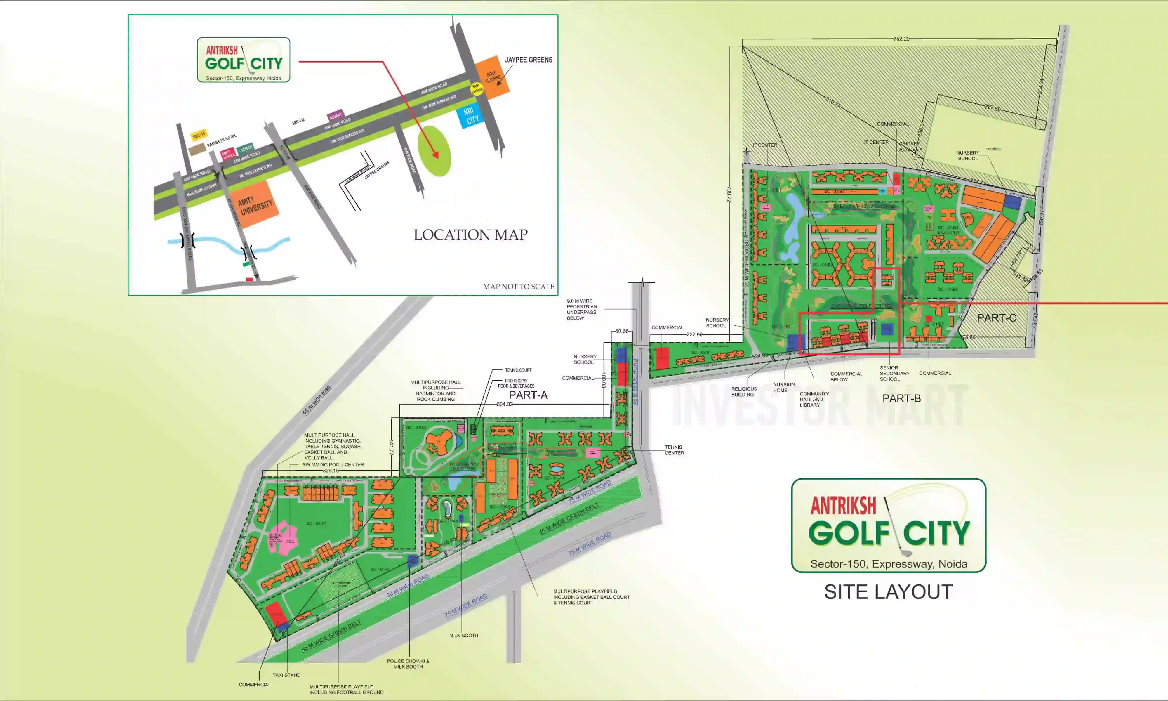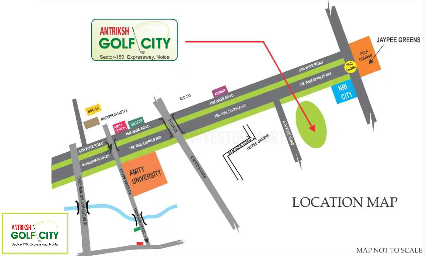 Antriksh Golf City is a wealthy neighborhood built on the idea that one should arrange one's life such that everything the resident does is related to golf. The project's crowning achievement is the scientifically-planned golf course. Golf is more than just a sport; it's a way of life, and this opportunity allows people to experience it.