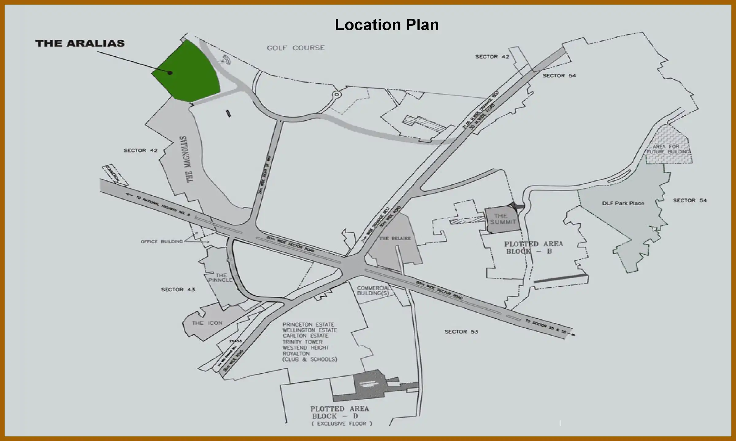 Being located in sector-42, phase 5, Gurgaon, this DLF The Aralias project seems to be based in the right place in the city. The home seekers will find the project site easy to approach via road from every corner in Delhi/NCR. Also, the site gives you access to the nearest hospitals, banks, schools, colleges, institutions, shopping malls, bus stands, metro stations, etc. Furthermore, you will also find project locations close to the highways and other known spots like PVR Theatre (9.9 km), Ambiance Mall (8.6 km), Indira Gandhi International Airport (14.7 km), Fun N Food Village (10.6 km), and more. Thus, you will get access to all such famous spots from this project’s site within a few minutes' distance via road. All in all, you will find the location of this project perfect to live with family and find all the relevant things to survive at a close distance from the site.