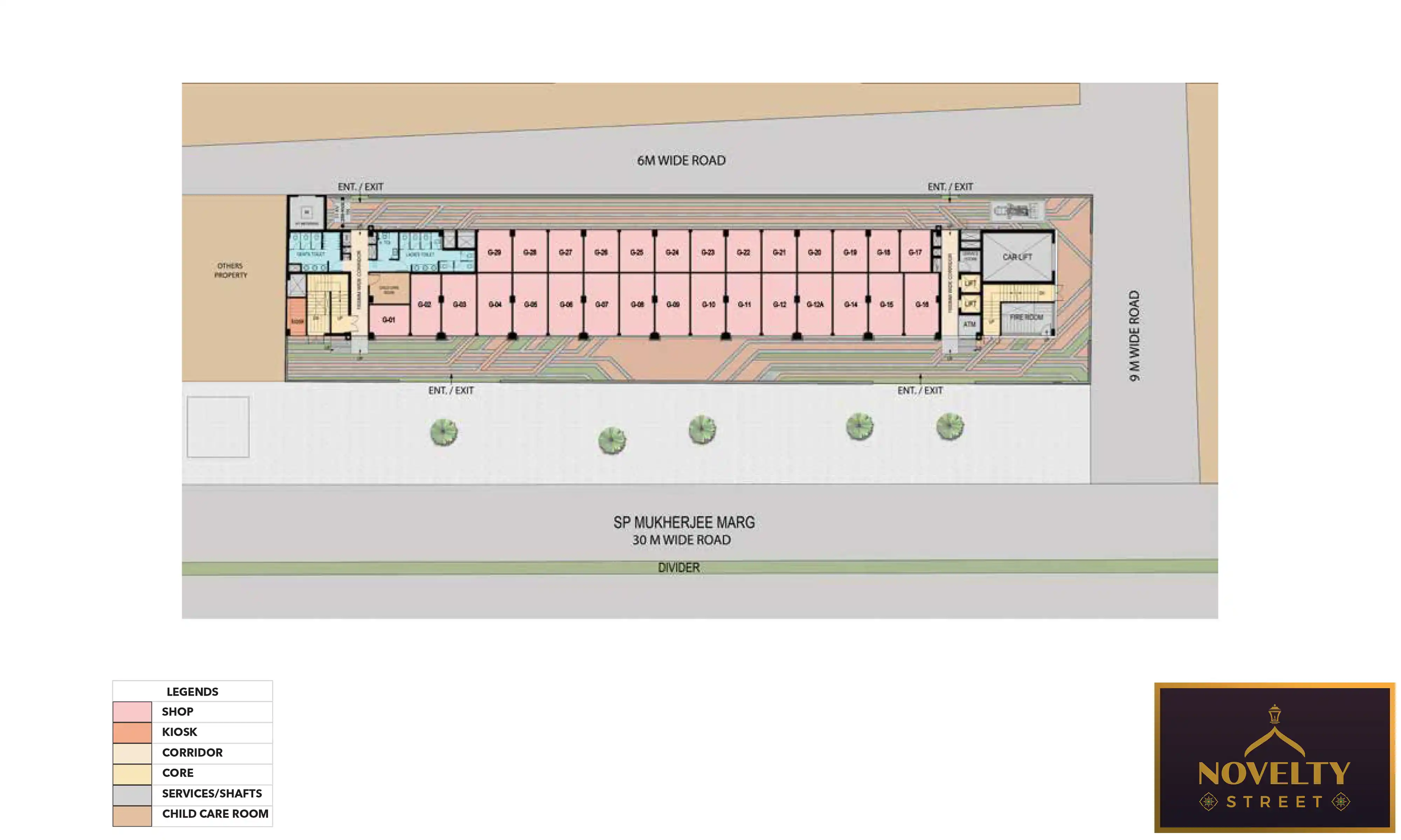 This commercial project also boasts convenient two-level basement parking which helps in allowing visitors and tenants to easily access the commercial spaces. Galaxy Sawasdee Novelty Street offers a unique benefit with its 12% assured rental income until possession, providing business owners with a stable financial return. To accommodate various business needs, the shop height within the development is set at a comfortable 15 ft which helps in allowing for creative displays and maximizing the utilization of space.