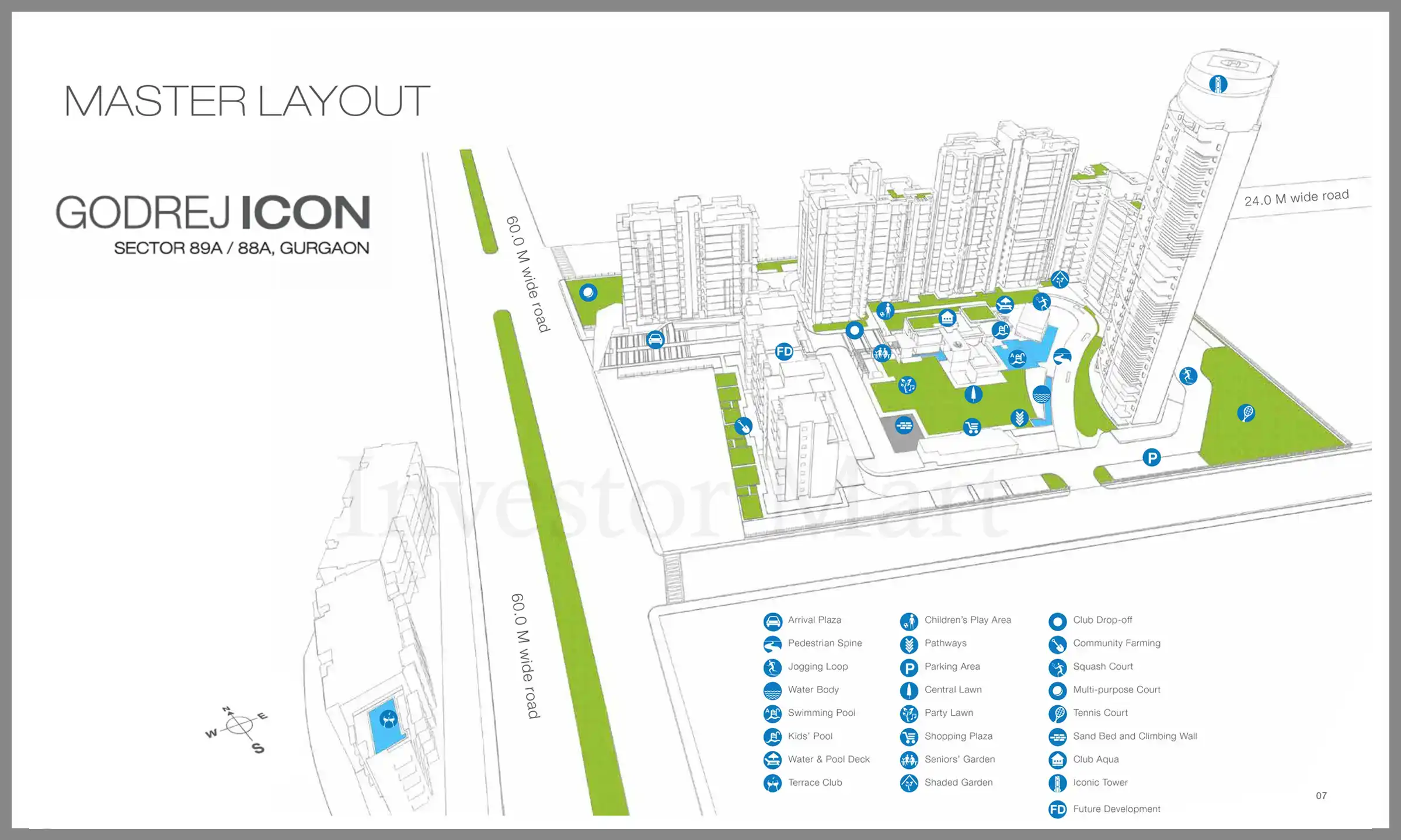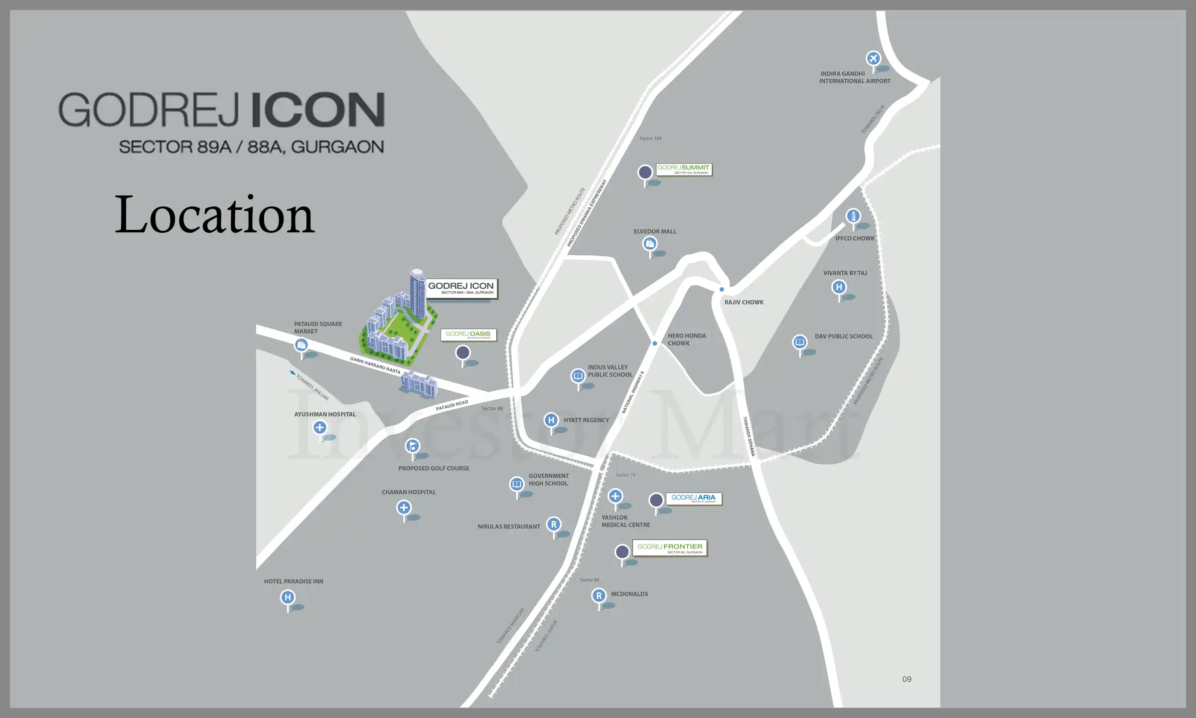 Godrej Icon location advantages as it has strategic location of Sector 88A, Gurugram. It is within close proximity to Pataudi Road, NH-8. The project is near to popular shopping malls, hospitals and schools. It adds with easy connectivity to IGI Airport, Delhi. It is 1.5 kms drive from Dwarka Expressway. The project is certainly one of the best in terms of connectivity. It connects well with Rapid Metro and Delhi Metro. The development connects with better road infrastructure and it has come up with best of the necessities all around. It makes great place to live with better specifications, lifestyle and as iconic development by Godrej.