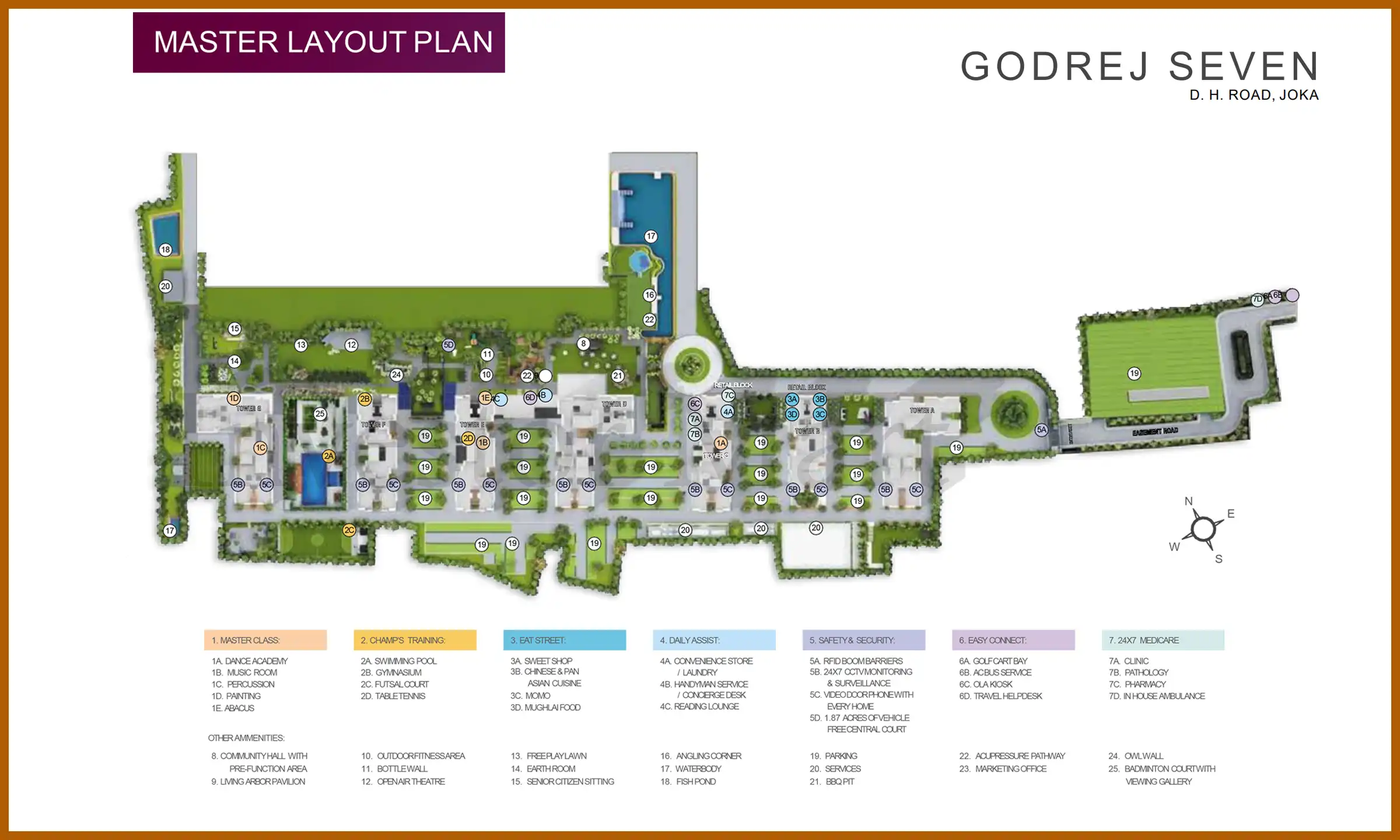 Godrej Seven is the appropriate name for the project. It adds with seven magnificent activities for development of you and children. It has “master class” to learn various instruments, champ’s training session, eat street, 24/7 medicare, daily assist, easy connect by OLA, premium safety and security features.