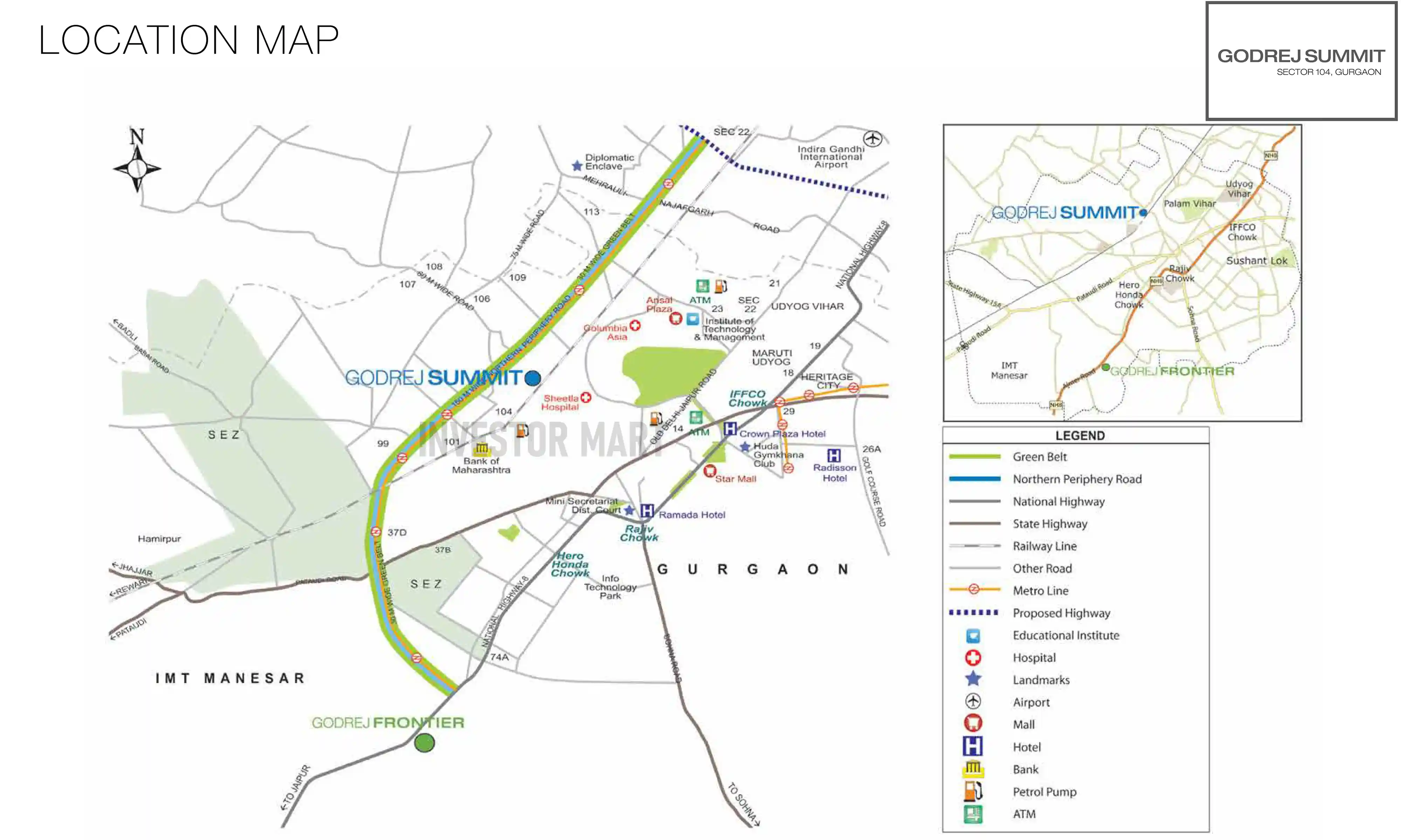 Location of Godrej Summit Situated in Sector 104, Godrej Summit offers a guarantee of privacy and exclusivity to its residents. With highly positive reviews, it is recognized as one of the best-located residential properties in Gurgaon. The convenience of transportation is a standout feature, with the Indira Gandhi International Airport just a short drive away and a nearby railway station. Delhi is easily accessible, being only 8 km away, while NH8 is also in close proximity. Additionally, IFFCO Chowk and Toll Road are conveniently located near Godrej Summit. The area is well-equipped with numerous reputable schools, colleges, healthcare centers, banks, shopping malls, and other essential amenities, making Godrej Summit an ideal choice for a comfortable and convenient lifestyle.