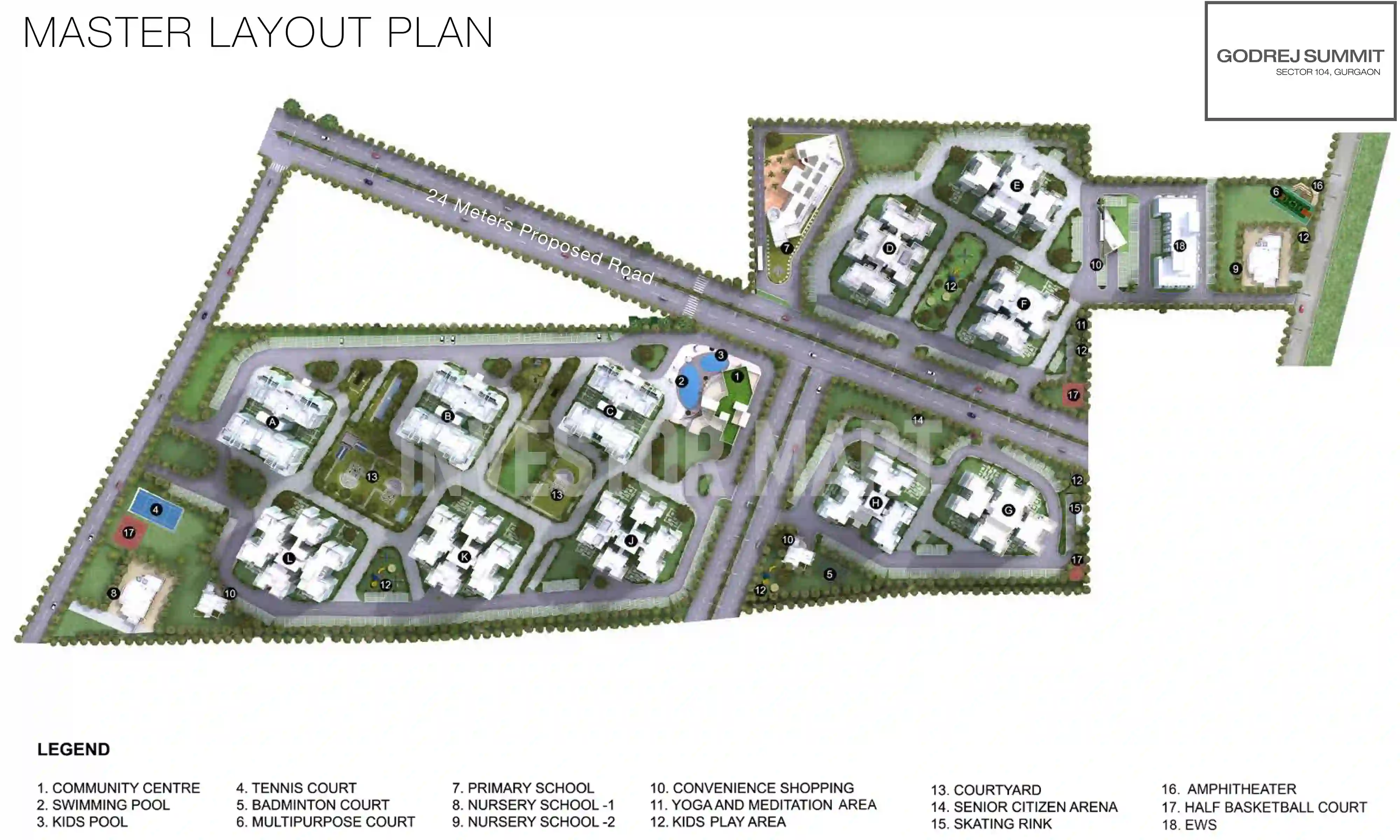 Godrej Summit Godrej has launched the Summit project in Sector 104, Gurgaon, featuring 2, 3, and 4-bedroom residences with contemporary interiors. Renowned architects have designed the project quite meticulously, ensuring exceptional attention to detail. The apartments at Godrej Summit are thoughtfully crafted, allowing ample sunlight and clear ventilation to permeate the property, providing a fresh and airy atmosphere. Surrounding the development are lush green landscapes, adorned with beautiful trees, creating a serene environment.