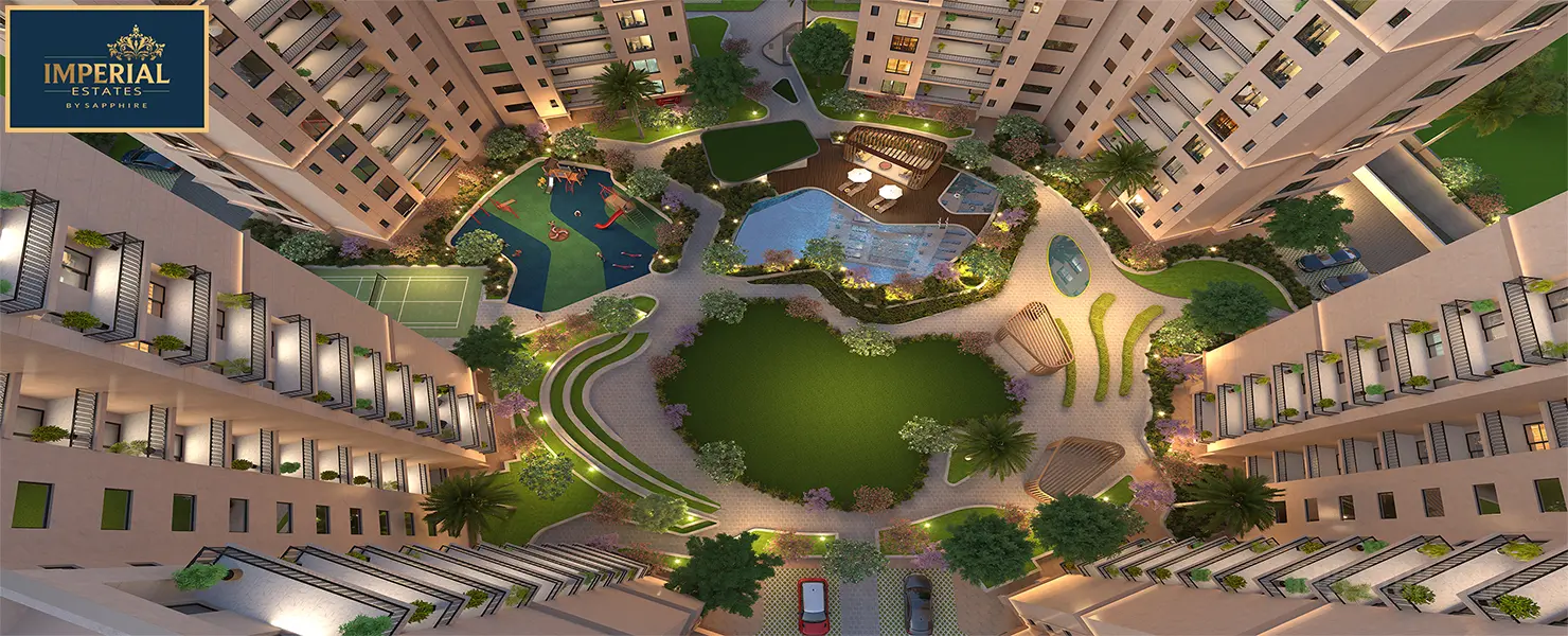 Imperial Estates by Sapphire is one of the best residential projects, which offers the best deals on luxury apartments in 3BHK and 4BHK configurations. This project offers the largest apartments in sizes ranging from 1038 sq. ft. to 1863 sq. ft. onwards. Moreover, the apartments will have robust construction and all required housing features such as kitchen, bedrooms, hall, toilets, balconies, furniture, lighting, water supply, etc. Hence, the investors will get the best-in-class residential properties in this housing project.