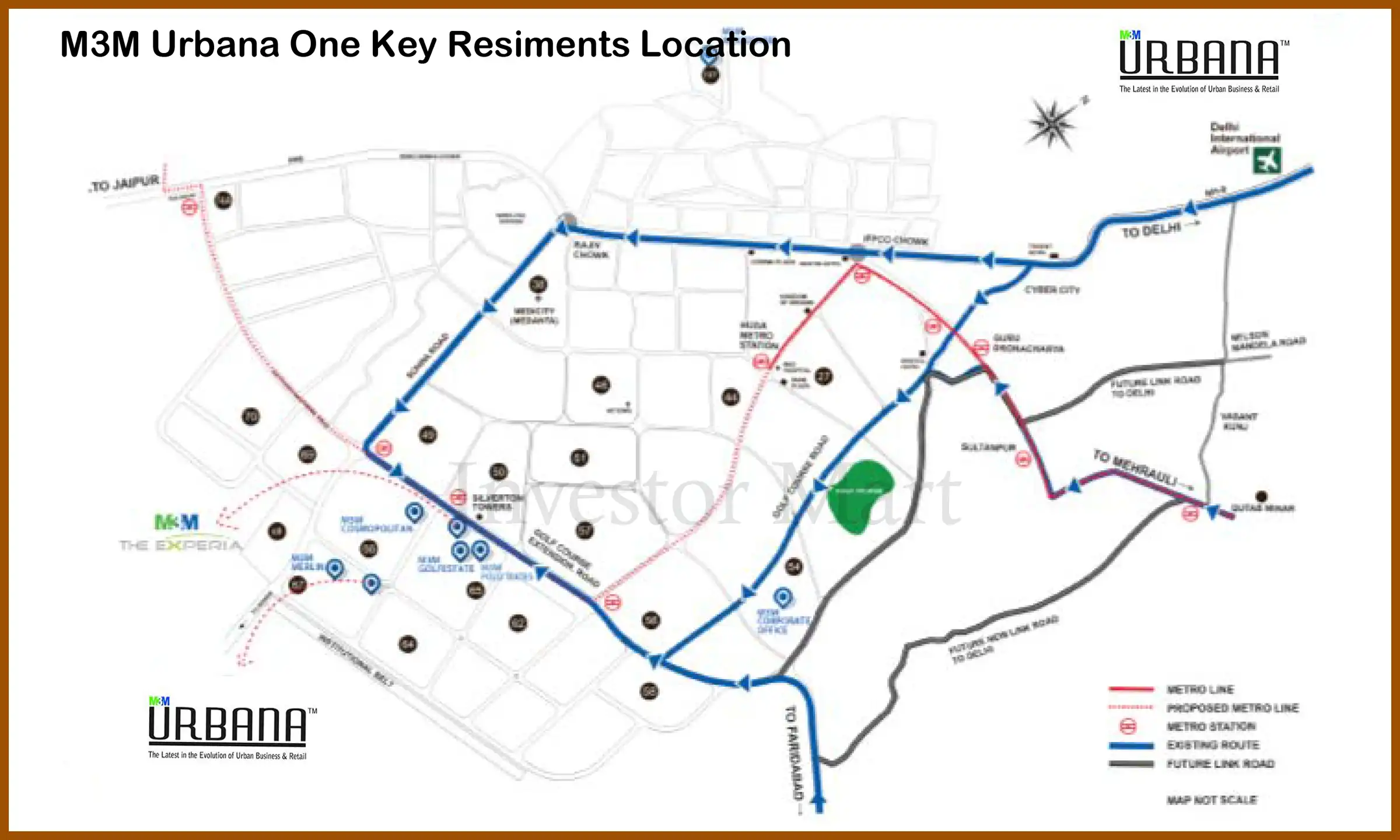 M3M One Key Resiments adds as anti-skid tile flooring with kitchen and balcony. It has vitrified tiles with living, dining room. It has laminated wooden flooring for bedrooms. It has spacious apartments with plush interiors and exteriors. The project adds as modern design which adds with better living standards. It has 24*7 water supply and power backup. There is high level security system for the residents It has fully equipped gymnasium with steam room. The project has air condition service apartments. It adds as plenty of choice with fine dining restaurants, retail space and food courts. The project adds with large commercial complex as “The Urbana”.