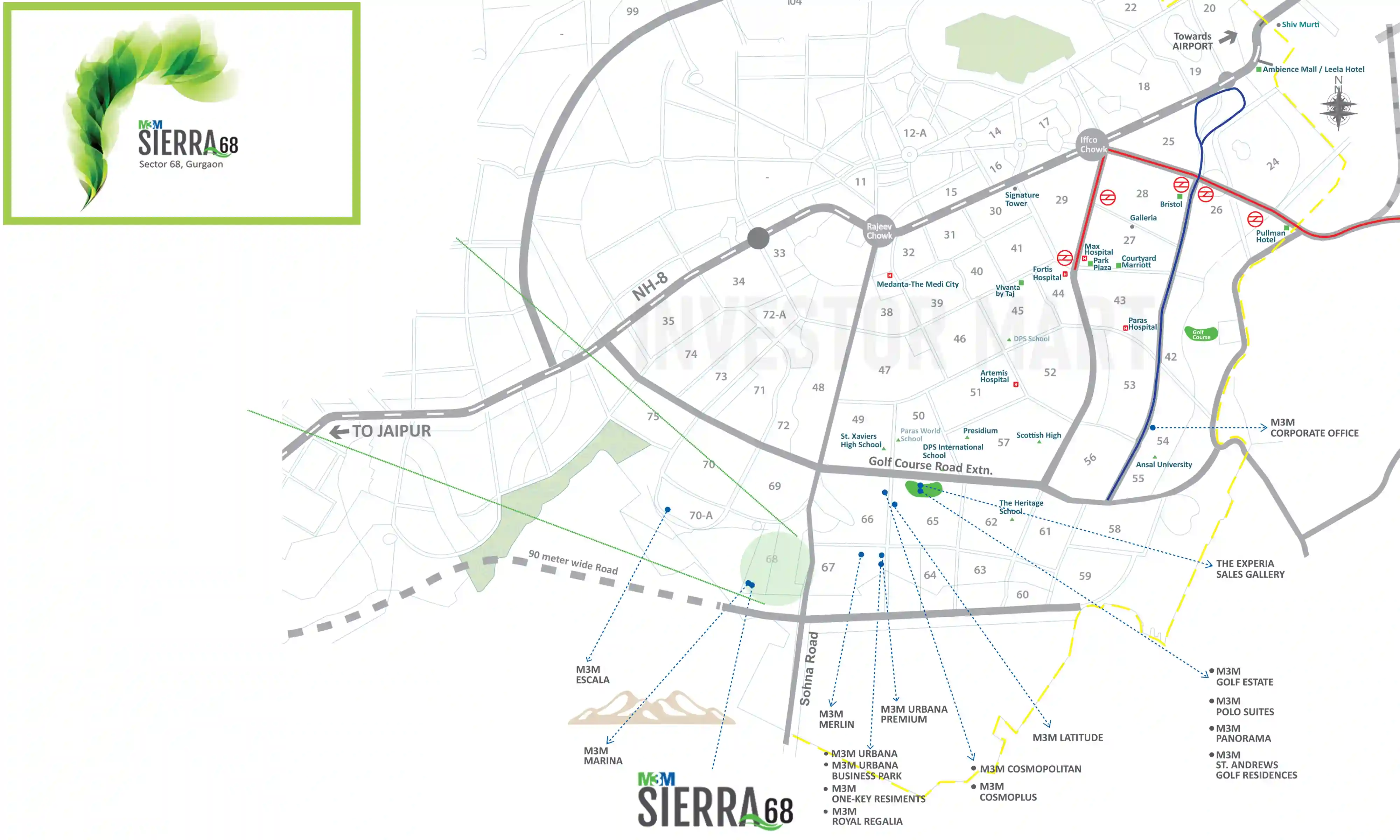 M3M Sierra 68 is a residential project which makes you feel pleasant with its lifestyle amenities, specifications. The project creates much of the necessary aspect of a fine living and create a residential community that is enriching, fulfilling and adds more to life. The development is at Sector 68, Gurgaon which is a bustling sector with positive energy and life here can be term as jingoistic with energy level bubbling up because of the pleasant atmosphere. The development adds more to the necessities with best of lifestyle which allows you to enjoy pub culture as well because of the huge number of malls within proximity. It adds with shopping, fine dining along with outdoor adventures and entertainment.