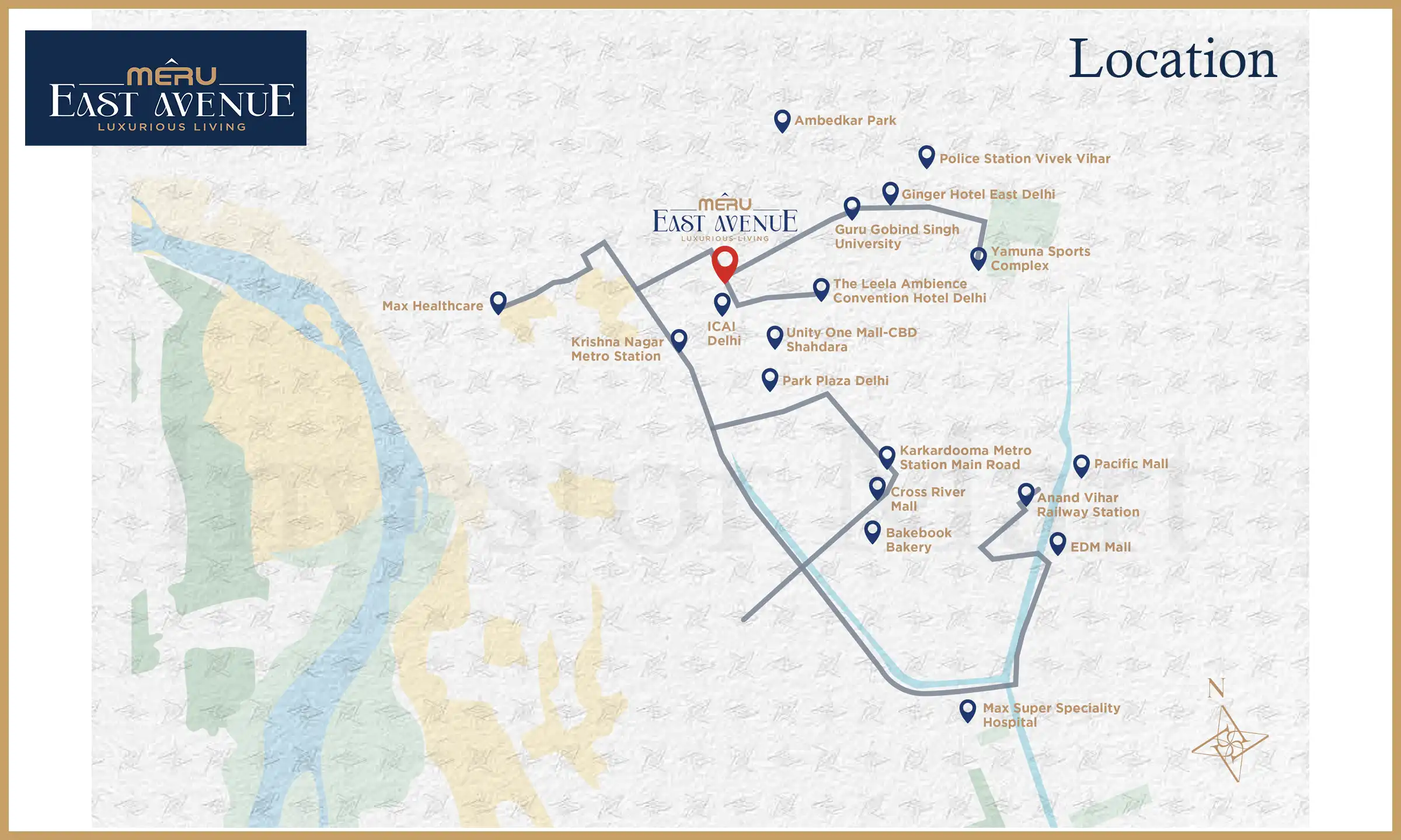 Location: Being located at Vishwas Nagar, located in East Delhi, Shahdara, this Meru East Avenue housing project is based at the top site in the city. The project site is eco-friendly and has a good environment for families to live in. Besides, the project location is connected to the nearest facilities such as hospitals, banks, shops, marketplaces, malls, bus stands, metro stations, and so on. Furthermore, the project location is also accessible to all highways in NCR, railway stations, and airport lines in the city via road. All in all, the location of this project is perfect for families to live a royal life.