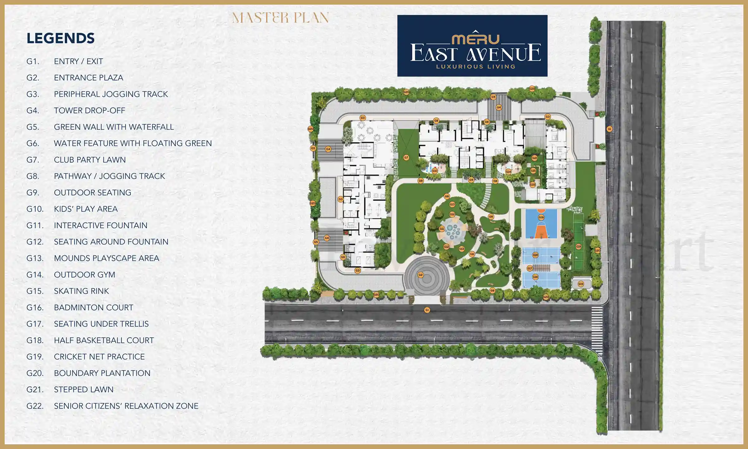 Master Plan: Meru East Avenue is a well-planned housing project that is being constructed as per the master plan that offers luxury apartments in the 3BHK ranges. According to the master plan, this project will have 18 floors and 91 units. Besides, the developer will provide good amenities at the site such as a garden, car parking, clubhouse, gym, jogging tracks, and so on. Apart from that, the project plan will also give facilities security features such as fire alarm systems, CCTV, surveillance, security guards, and so on. Hence, this new housing project will have good infrastructure and amenities as per the master plan.