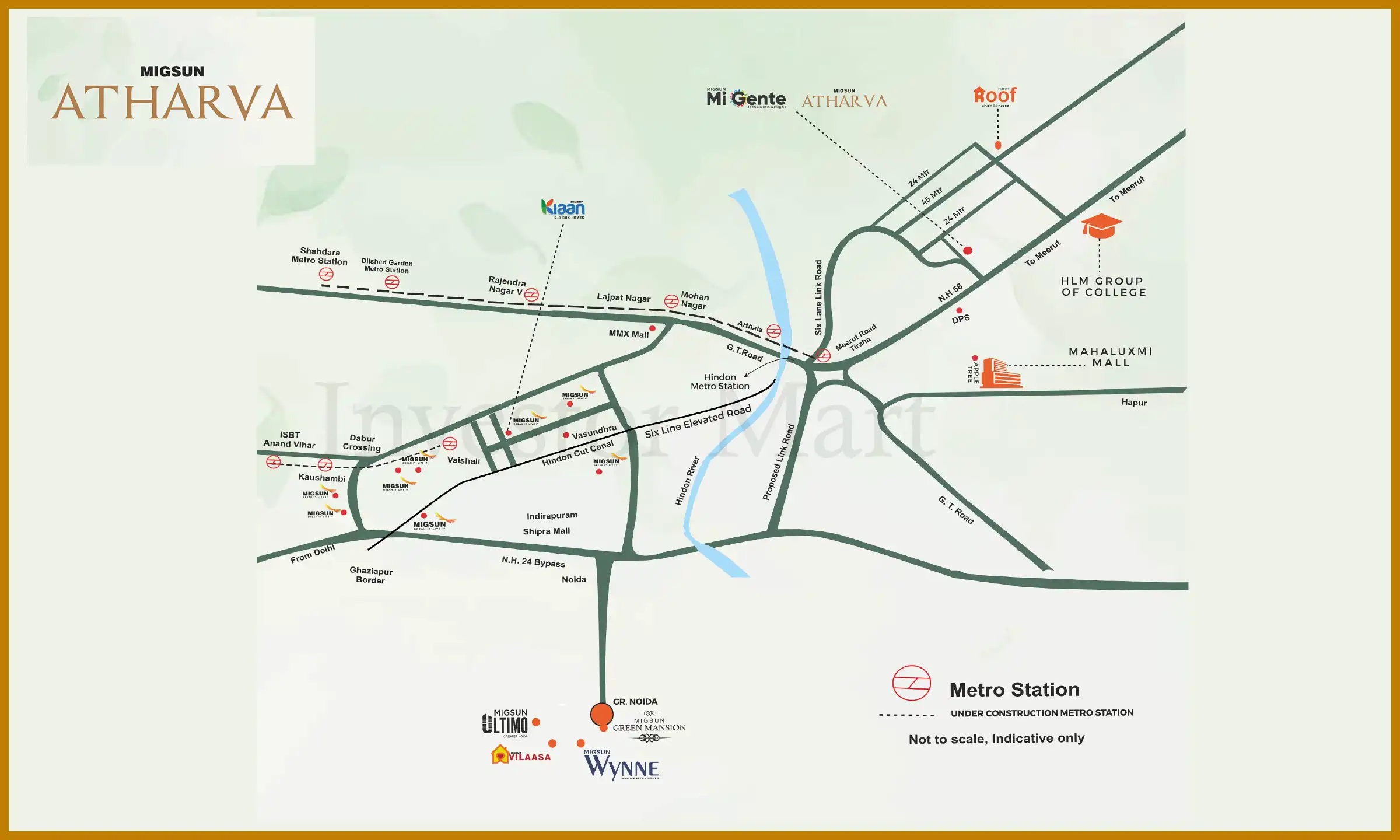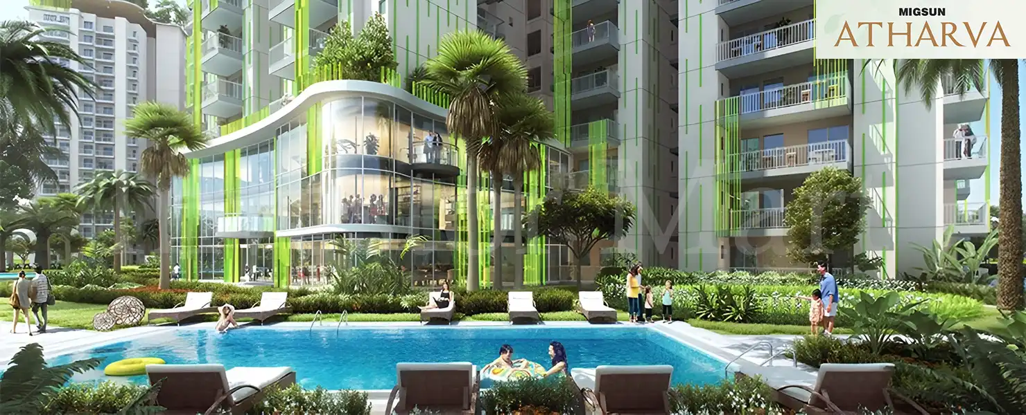 The Migsun Atharva project is located in Raj Nagar Extension, a neighborhood near Sanjay Nagar and Raj Nagar in Ghaziabad. Located only a few minutes away from Delhi, the locality is fast developing as a residential destination. This is because it is easily accessible, offers affordable properties, and is well connected to Noida and Ghaziabad. This area is home to many educational institutions, including the Raj Kumar Goel Institute of Technology, the Presidium School, the Sanskar World School, and the GD Goenka Public School. There are a number of notable healthcare facilities nearby, including Columbia Asia Hospital, Yashoda Hospital, and Sarvodaya Hospital and Research Centre. In addition, key shopping malls & complexes are within half an hour drive of this location, such as Gaur Central Mall, The Opulent Mall, and World Square Mall.