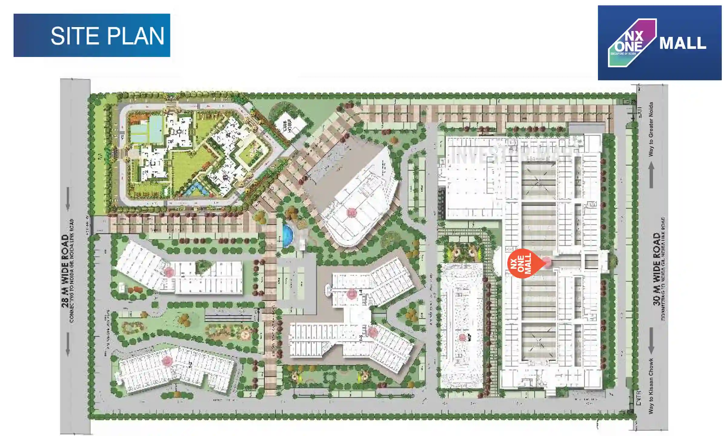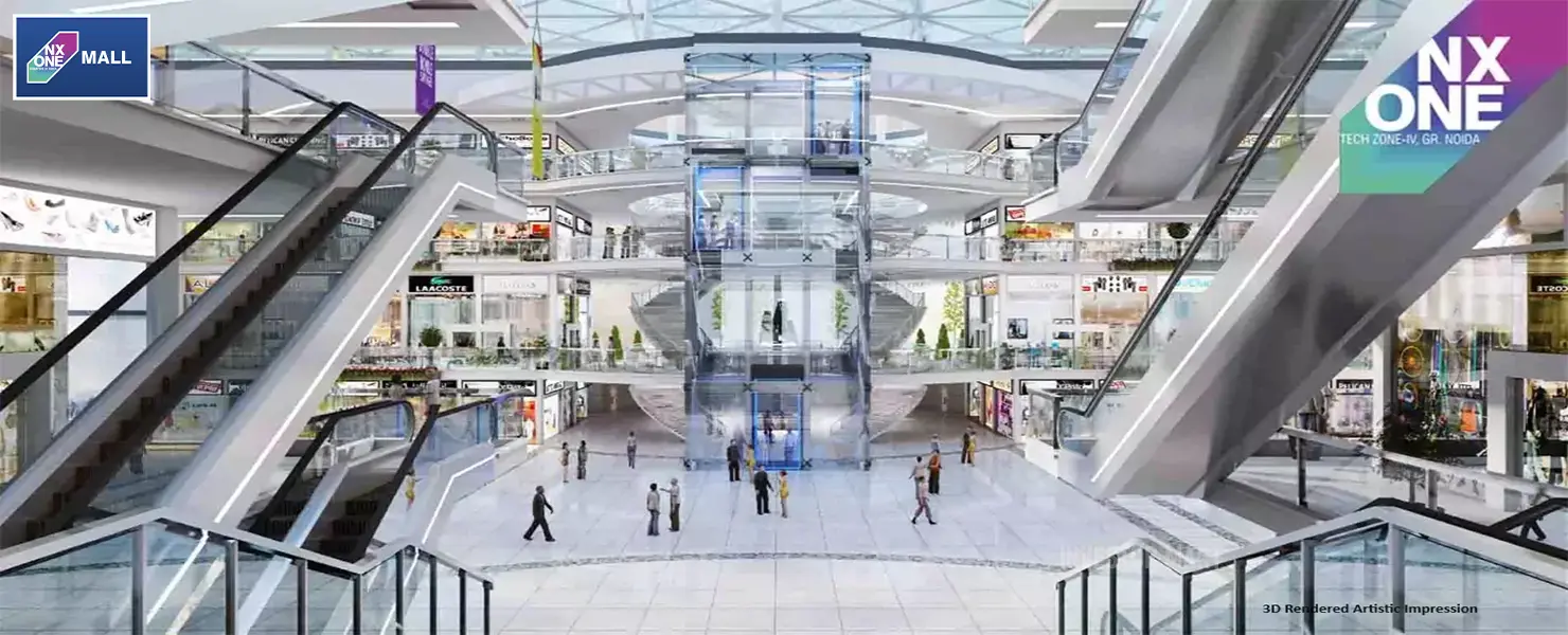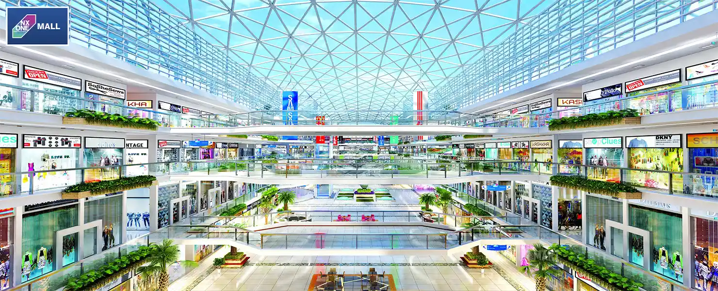 The whole building and shops inside are surrounded by greenery, and the concept of green buildings is implemented throughout the entire project. The mall offers retail shops, business suits, studio apartments, offices, restaurants, cafeterias, and grocery stores to meet daily needs. The rate per square foot for shops and offices is Price on Request. NX One Commercial will also offer large spaces for ITES and IT offices, a business center, 2-bedroom apartments, ATMs, banking spaces, a multiplex, and a food court. NX One Mall will now feature nine multiplex screens opened by DAH Group in partnership with PVR Cinemas. This is one of the most awaited projects among business owners in Noida as it will provide a significant investment opportunity for them.