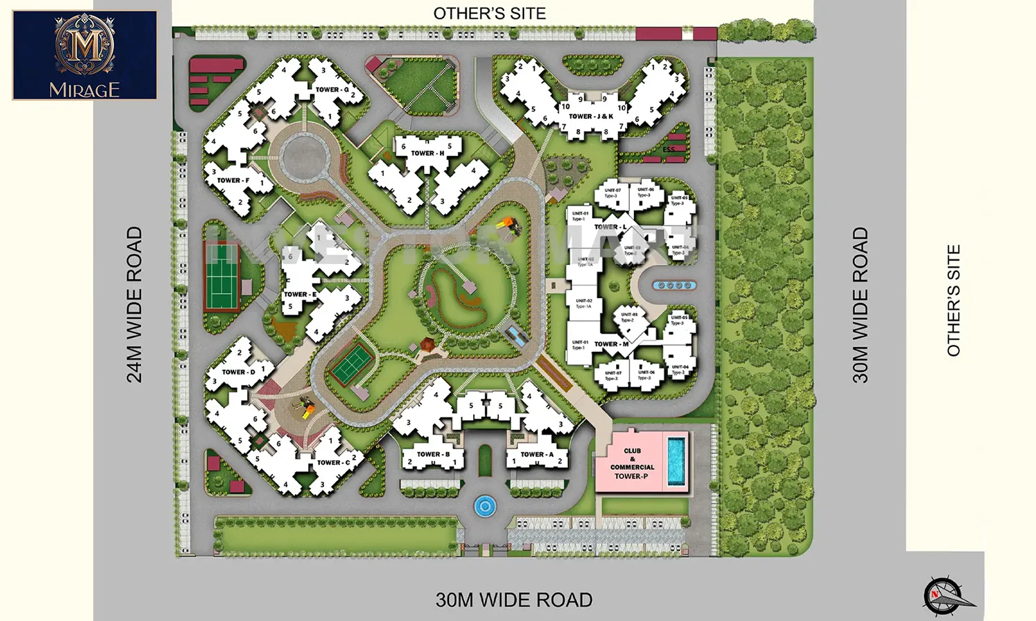 The amenities extend beyond conventional offerings, with RG Mirage featuring unique additions such as a peripheral jogging track, garden pavilions in the yoga/meditation garden, and a central park pathway. Residents can also unwind in the fragrance garden with linear sitting areas or enjoy the serenity of their apartment's private garden. Adding to the allure, a palm avenue with a linear water cascade provides a touch of elegance to the surroundings.
