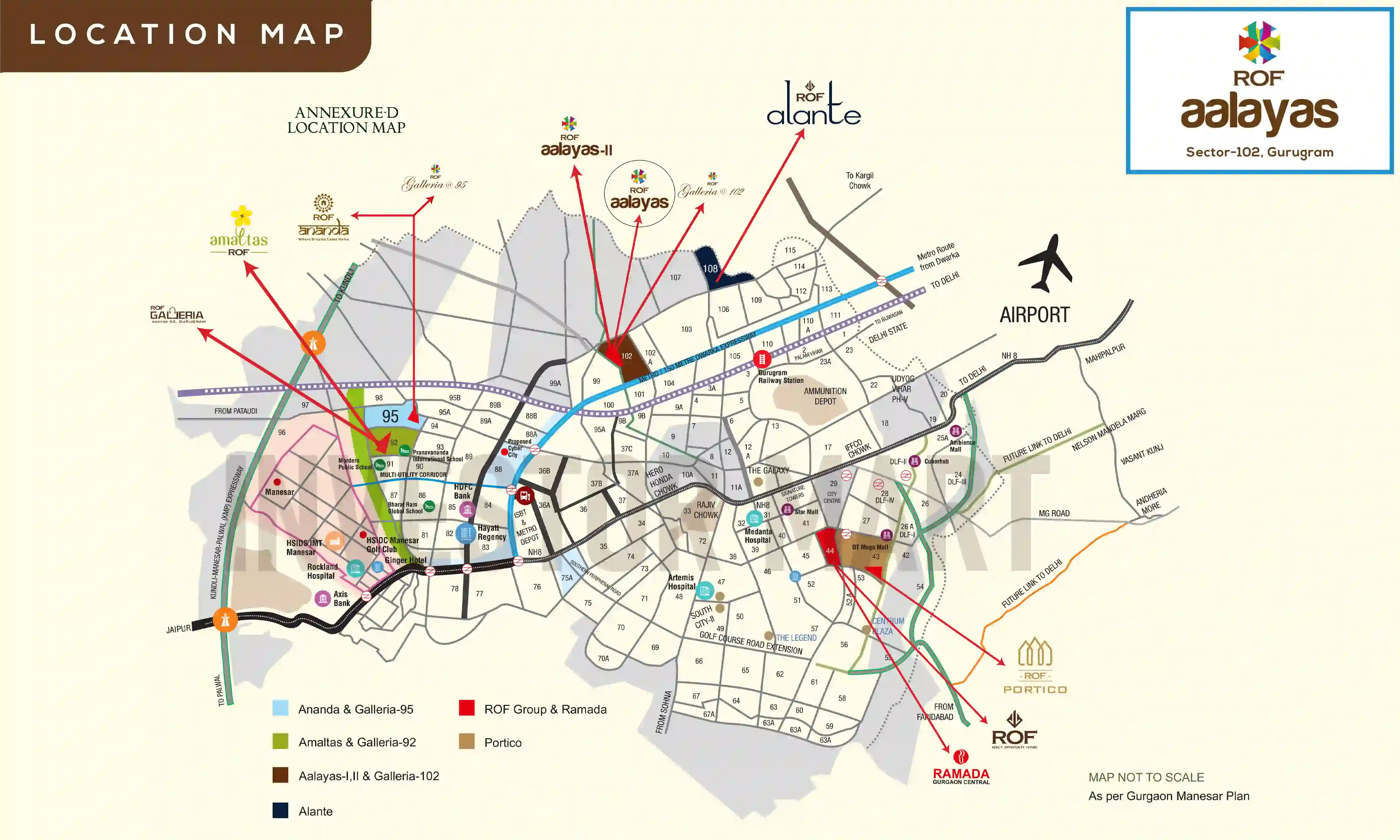 Rof Aalayas is a Haryana RERA certified project and comes as lavish infrastructure. It has special amenities as club house, bar and lounge, cafeteria and food court. It comes with jogging and strolling track, cycling and jogging track, outdoor tennis court, private terrace and garden. It has best of the locality as it has Emaar MGF housing project in neighbourhood and with BPTP in close proximity. The project fulfils the daily needs and also other retail facilities which comes within walking distance of the residential development.