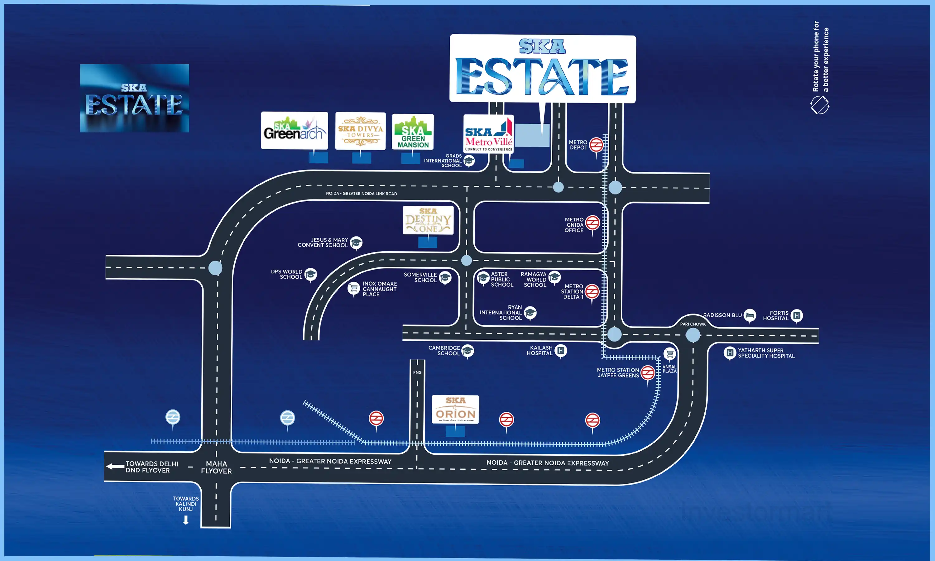 SKA Estate Overview Homebuyers will get their addresses in Greater Noida in a newly launched residential project named the SKA Estate housing project launched by the SKA Group. This is a new residential project, which is a perfect choice for homebuyers to reserve their dream homes to reside in at a premium location in the city. This fantastic project is located at Eta 2, Greater Noida, in the correct place. The site of this project is excellent, as it is surrounded by nature and has a nice environment to stay with family. Further, the site appears perfect to reside in, as it provides you with advantages like hospitals, banks, schools, colleges, marketplaces, malls, etc. In addition, this project's plot is linked to highways such as Noida Expressway, NH-24, and the rest of the parts in Delhi/NCR via road.