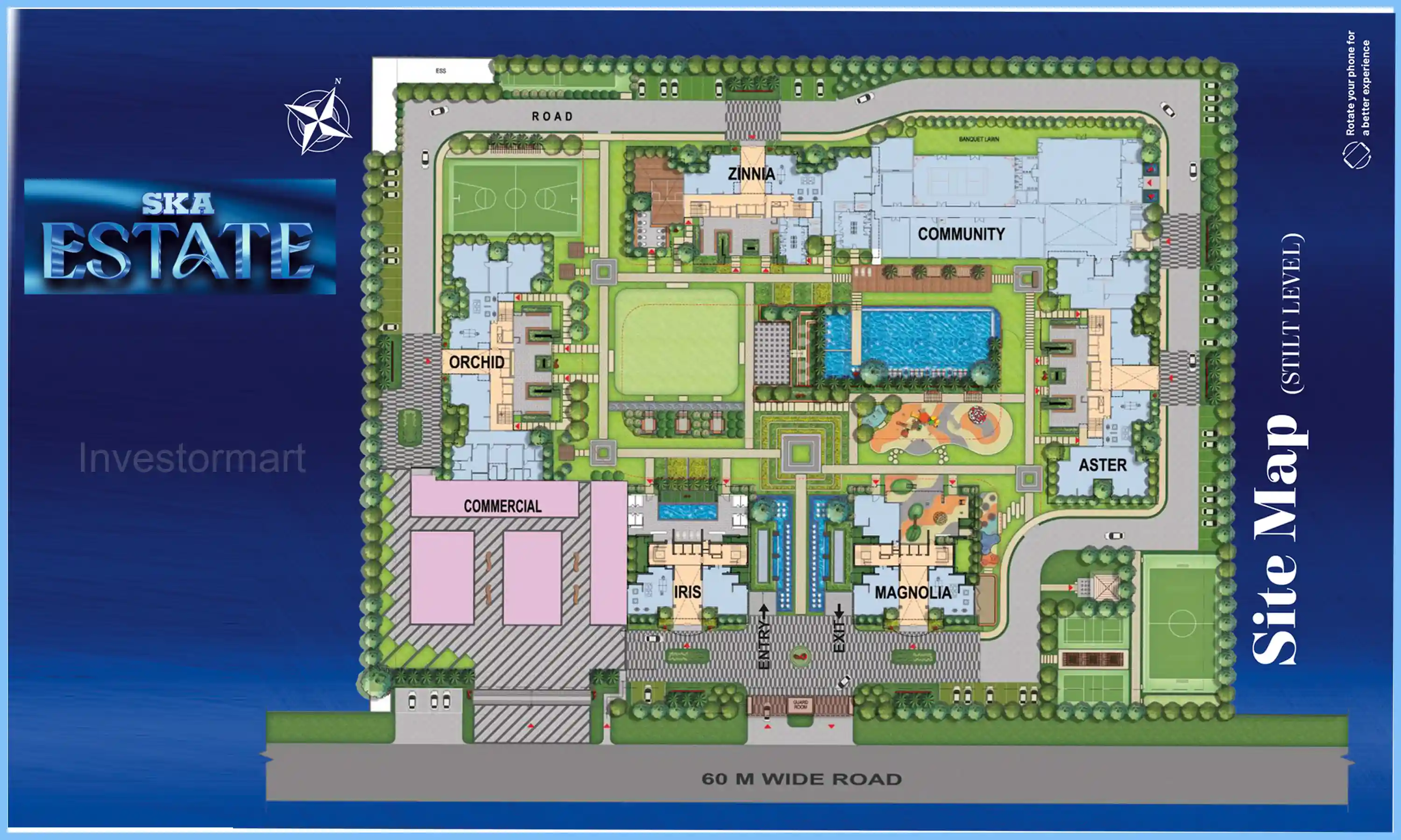 Amenities SKA Estate is an ongoing housing project that is being developed exactly by the developer. According to the blueprint of this project, you will get all relevant amenities at the location, including street lights, a garden, a clubhouse, a tennis court, a gym, a kids' playground, a swimming pool, security, CCTV, etc. Apart from that, the site will have additional features such as plants, trees, car parking, a rain harvesting system, surveillance, a water treatment system, and more. Overall, the project site will be furnished with all required amenities for families.