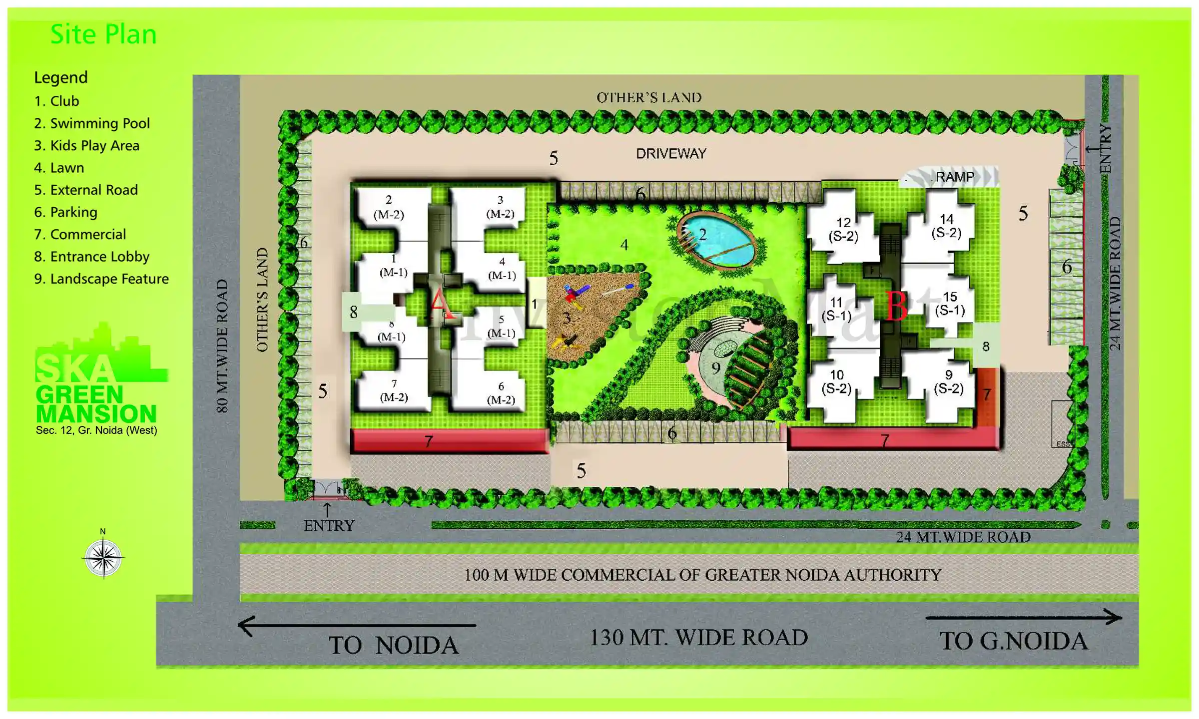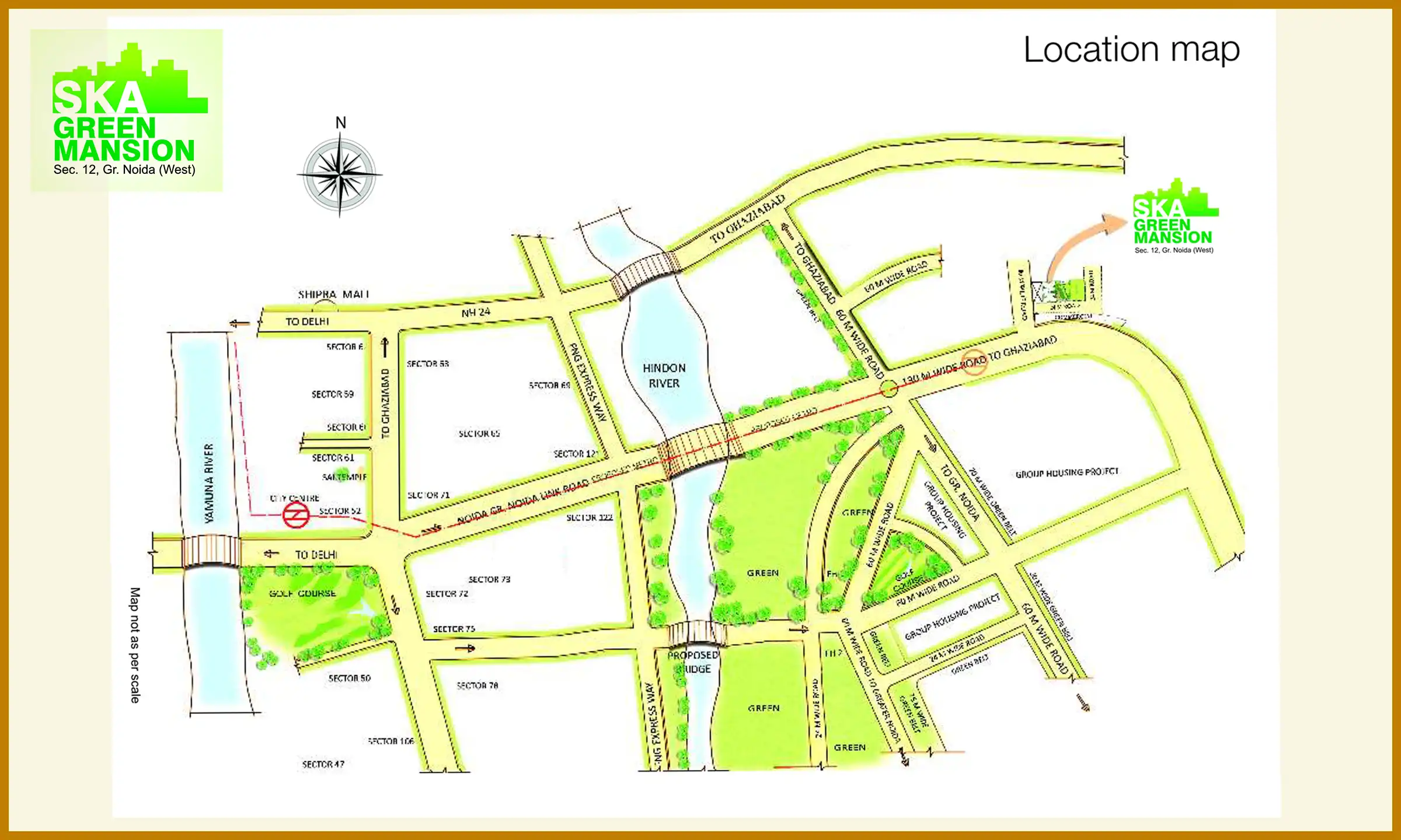 The location of the project SKA Green Mansion is at Sector 12, Noida Extension or Greater Noida West. It is well connected with National Highways and also Metro connectivity is on the way with nearest station at 0 Km from. The other way to connect is through fast moving Yamuna Expressways and also the Western Peripheral Expressway.