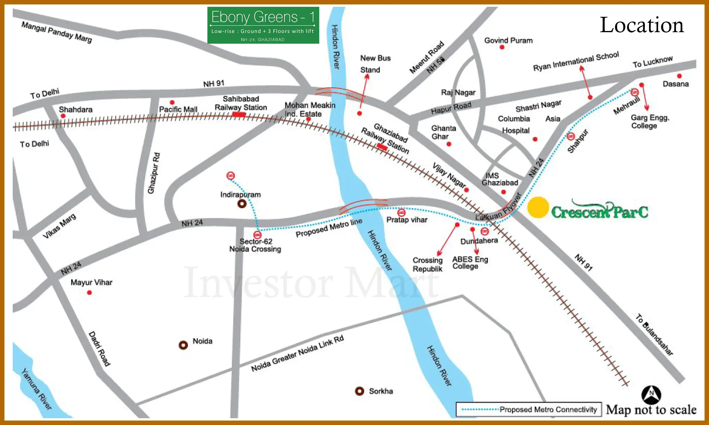 Sare Ebony Greens is strategically located in Lal Kuan, Ghaziabad, alongside NH 24 (Delhi-Meerut Expressway), providing extremely good connectivity to key areas within the NCR.