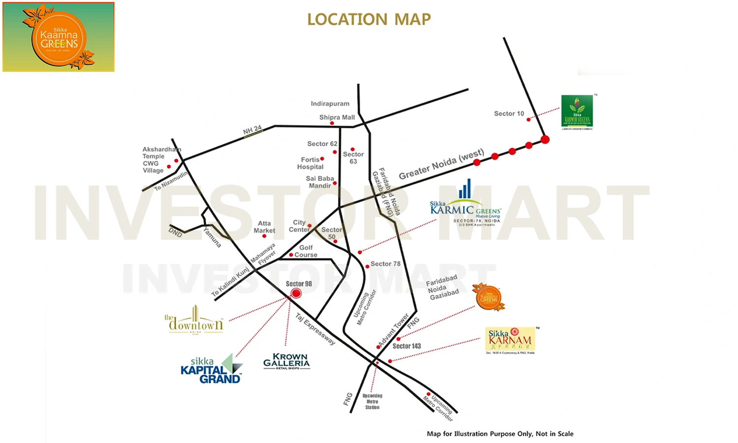 Sikka Kaamna Greens is located at Sector 143, Noida. The homes have proposed metro station at doorstep and also they are close to corporate offices which gives much of the office going crowd to have their own sacred space in the form of homes.