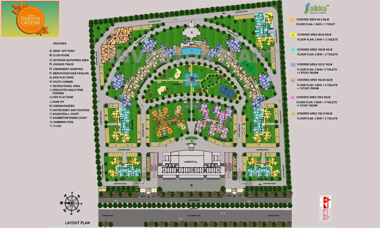 The 1 BHK apartment at Sikka Kaamna Greens has a super built-up area of 596-650 sq ft. The 2 BHK apartment at Sikka Kaamna Greens has a super built-up area of 950-1315 Sq Ft. The 3 BHK apartment at Sikka Kaamna Greens has a super built-up area of 1,350-1700 Sq ft. The 4 BHK apartment at Sikka Kaamna Greens has a super built-up area of 1,363.78 Sq ft.