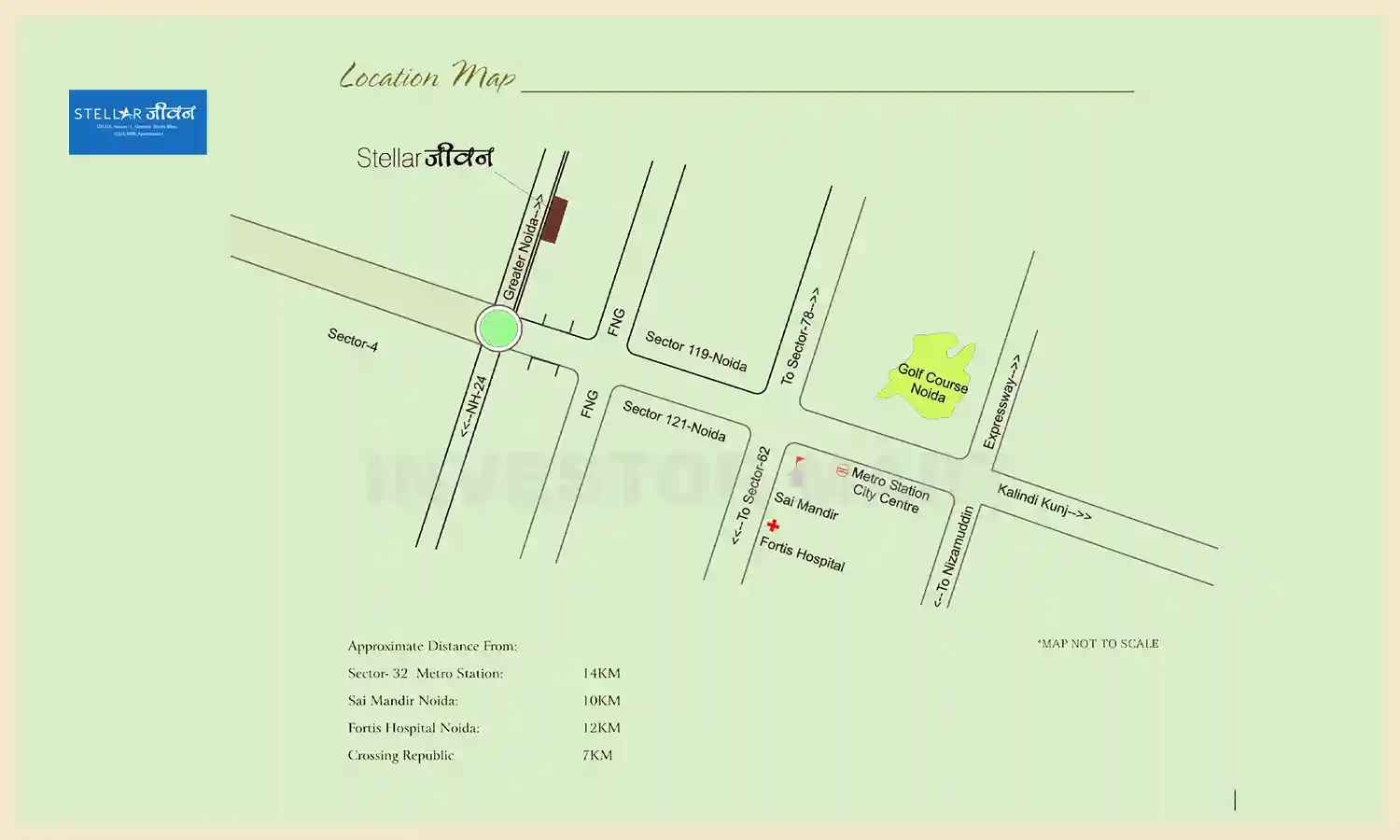 Stellar Jeevan Location Map is located in the heart of Noida Extension i.e. sector-1, Greater Noida, West. The project site is full of greenery and has pleasing vistas of nature around the corner to cherish. Furthermore, the project site is easy to commute via road and gives access to local bus stand, transportation, upcoming metro stations, hospitals, schools, colleges, institutions, corporate offices, etc. Moreover, the project location is also close to the FNG Expressway, Noida Expressway, DND flyover, Pari Chowk, NH-24, etc. All in all, this Stellar residential project is based at the right spot in Greater Noida city that is good for living with family.