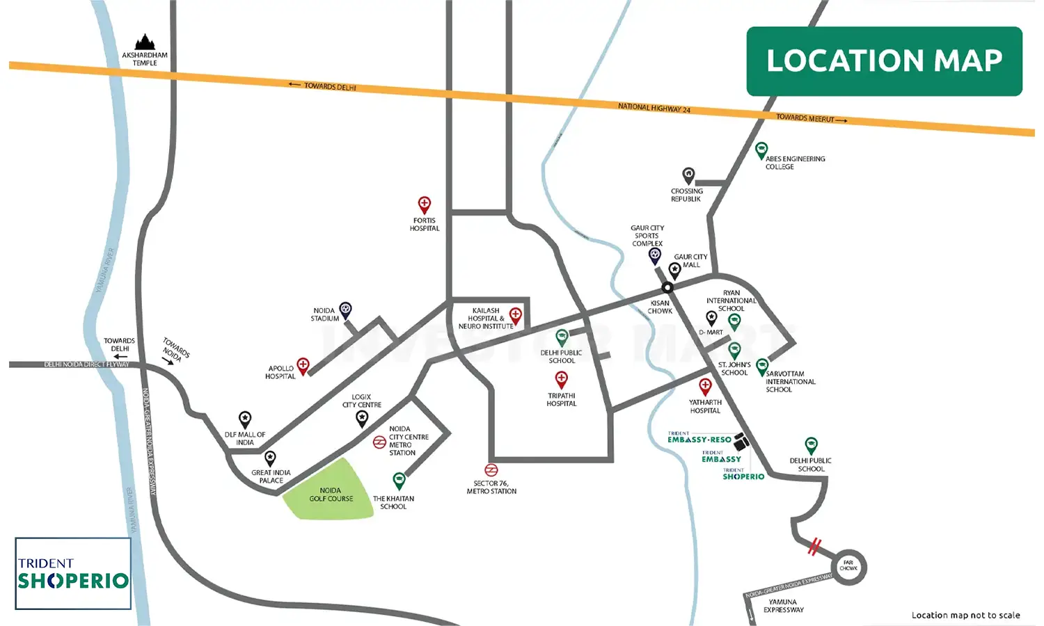 Being located in Sector-1, Greater Noida or Noida Extension, this Trident Shoperio Location Map project is based at the right place in the city, which is easy to commute via road. Moreover, the project site is eco-friendly and surrounded by the nature as well. Furthermore, the project location is close to relevant places like highways, airports, metro stations, bus stands, shopping malls, Residential, schools, colleges, etc. Also, you will find some places close to the site such as NH-24, Noida Expressway, FNG Expressway, DND flyover, Pari Chowk, etc. Hence, these societies shops project is based at a significant place in the city that will give you access to reach the site via road from every corner of Delhi/NCR. Prime location. 60 metre wide road well-connected with service lane. High visibility on lower ground floor & upper ground floor shops/showrooms. Strategic location. Good connectivity from Delhi NCR.