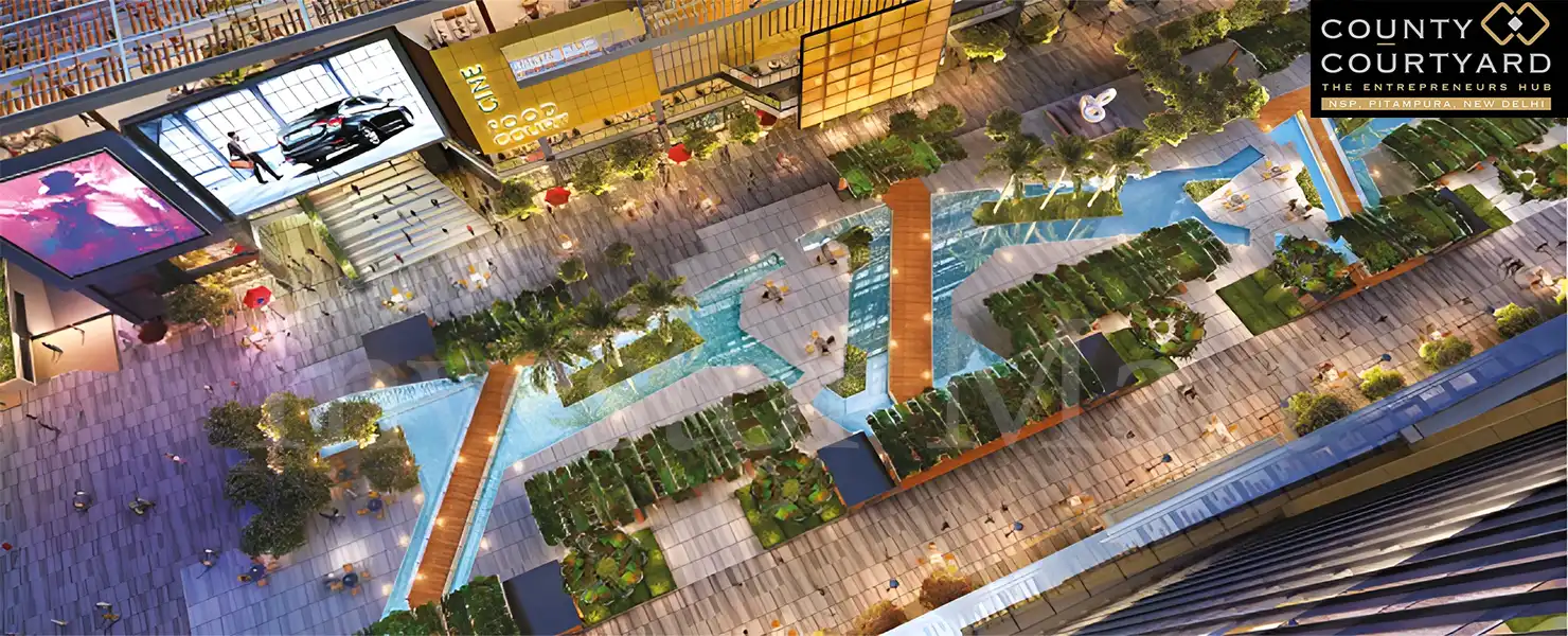 Location advantages : Country Courtyard which is a well known commercial project among all the businessmen who want to invest their valuable money in reliable and worthy commercial projects because of its location where it is situated. This Project offers numerous location advantages that make it a highly desirable commercial project. One of its key advantages is its proximity to intersecting Metro Stations which helps in providing convenient access for commuters. You should know that this project is directly connected to the Ring Road which helps in offering excellent connectivity for vehicular traffic.The location of this futuristic commercial project also ensures easy accessibility to major areas in the vicinity. It is close to NSP Metro Station and Shakurpur Metro Station which makes it effortless for employees and clients to reach the project.