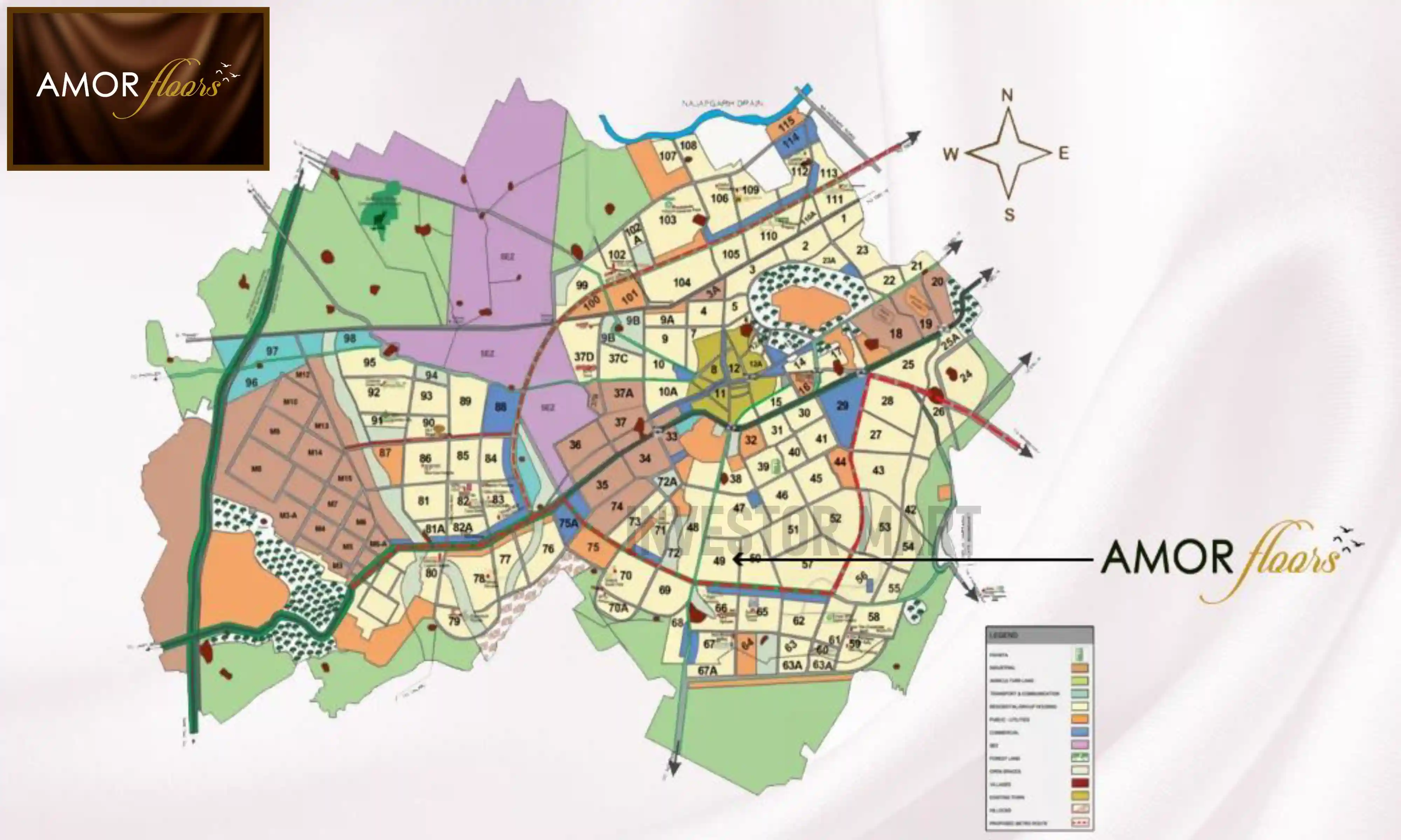 Location of 4S Amor Floors: The Amor Floors project is situated in a strategic location near key roads such as the Sohna Road, Badshahpur crossing, and Golf Course Extension Road. It is surrounded by several sectors, including 50, 47, 48, and 66. Public transportation is readily available, with the Huda City Metro and Gurgaon Railway Station located at 20 minutes and 10 km respectively. The IGI Airport is also easily accessible, being just 20 km away. There are several recreational facilities in the vicinity, and renowned schools such as St. Xavier's High School and DAV are located nearby. Park and Artemis Hospitals are also in proximity. The area also features various shopping complexes like Eros City Square and Ninex City Mart. The project is surrounded by several other residential and commercial developments, making it an excellent location to live and invest in.