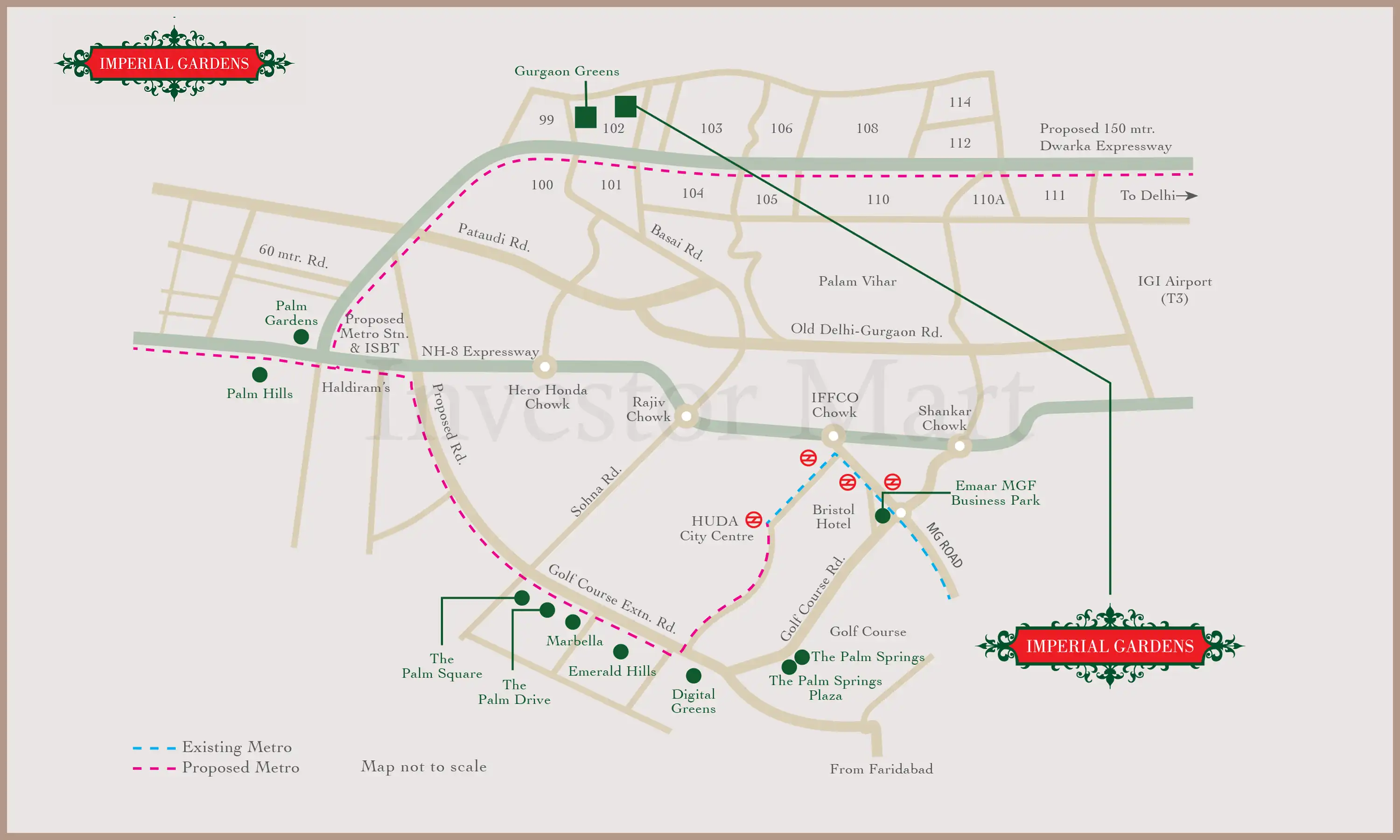 Location Emaar Imperial Gardens project is located in sector-102, Gurgaon, which is a safe and posh area in the city. This awesome housing project is located at the right place in Gurgaon, which gives you easy connectivity via road and access to all famous spots in Gurgaon and the rest parts in Delhi/NCR. The project site has ultimate greenery and a lush area that keeps you close to nature. Moreover, this project gives proximity to essential things like schools, colleges, hospitals, banks, metro stations, bus stands, etc. Moreover, the site gives you access via road to the railway stations, airports, and other well-known spots like Sunrise University (5.7 km), Nehru Stadium (8.7 km), IGI airport (24.2 km), Dwarka Expressway (3.4 km), etc. Hence, it is convenient to find all such places near the project site that you can reach in a few minutes via road. All in all, this project is based at the perfect spots in Gurgaon.