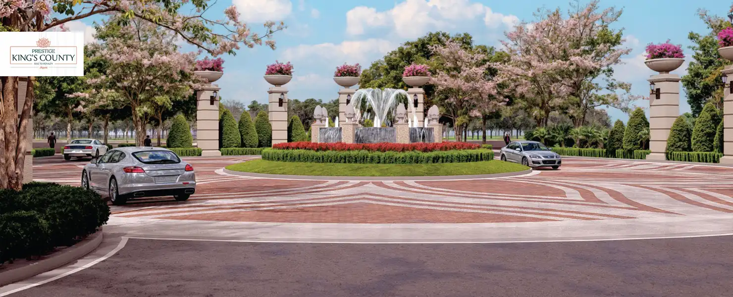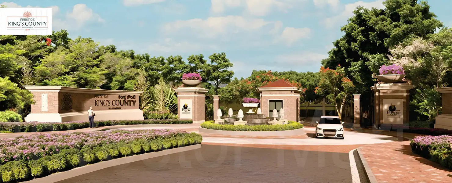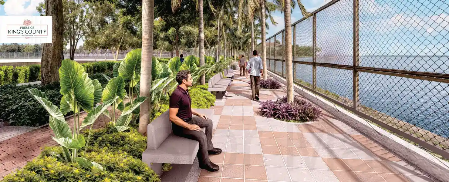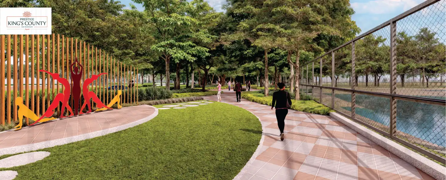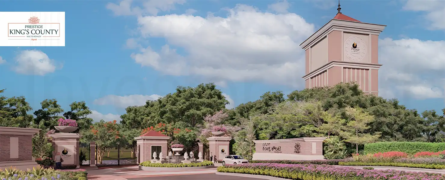 Prestige Kings County has possession that is with January 2026. It is located at Jigani, Bangalore. The project is in proximity to Tech parks, shopping centers, and hospitals. It is complemented by better schools, a lake that has beautiful parks, gardens. It gets own organic farms and has an orchard entrance, green with beautiful cover and nature. It has active lifestyles with 9 metres and 12 metres roads within the premises. The project gets a waterfront park roundabout, along with a waterfront pathway and parks. It offers location benefits with the Achiever’s academy at 2.4 km, 2 Km for IZEE Business school. Medical assistance within 2 km by Medax Vijayshree Hospital. KIA Airport is 60 km away. Heelalige railway station is at 7.9 km, NH-44 is at 4.9 km, Infosys Golf Course is at 9.5 Km, Holiday Inn Park is at 6.5 Km.