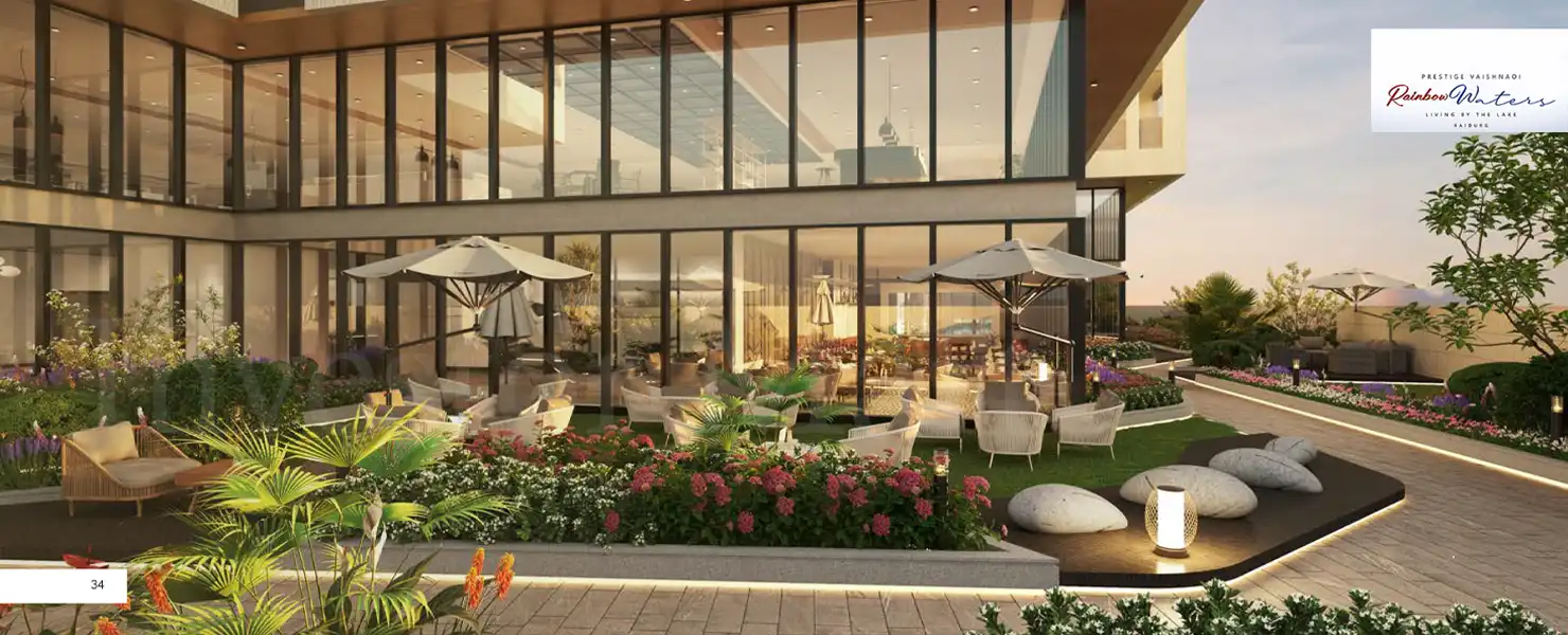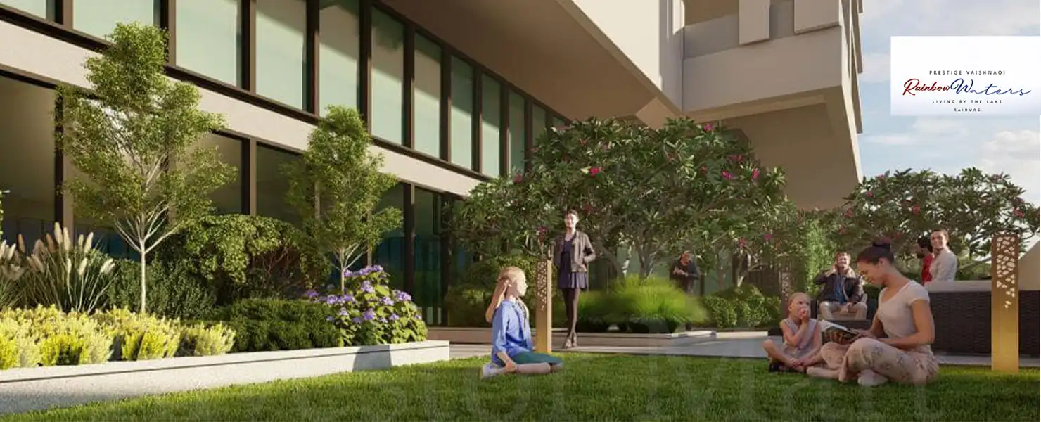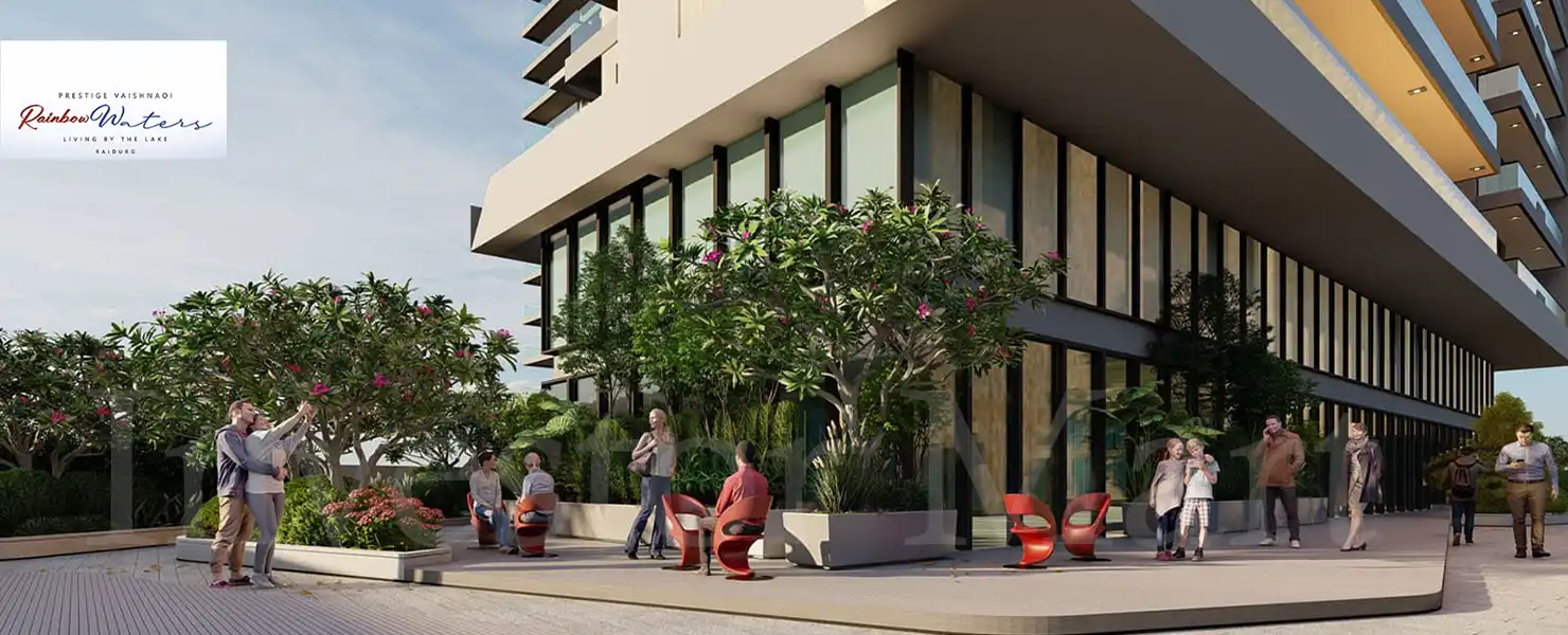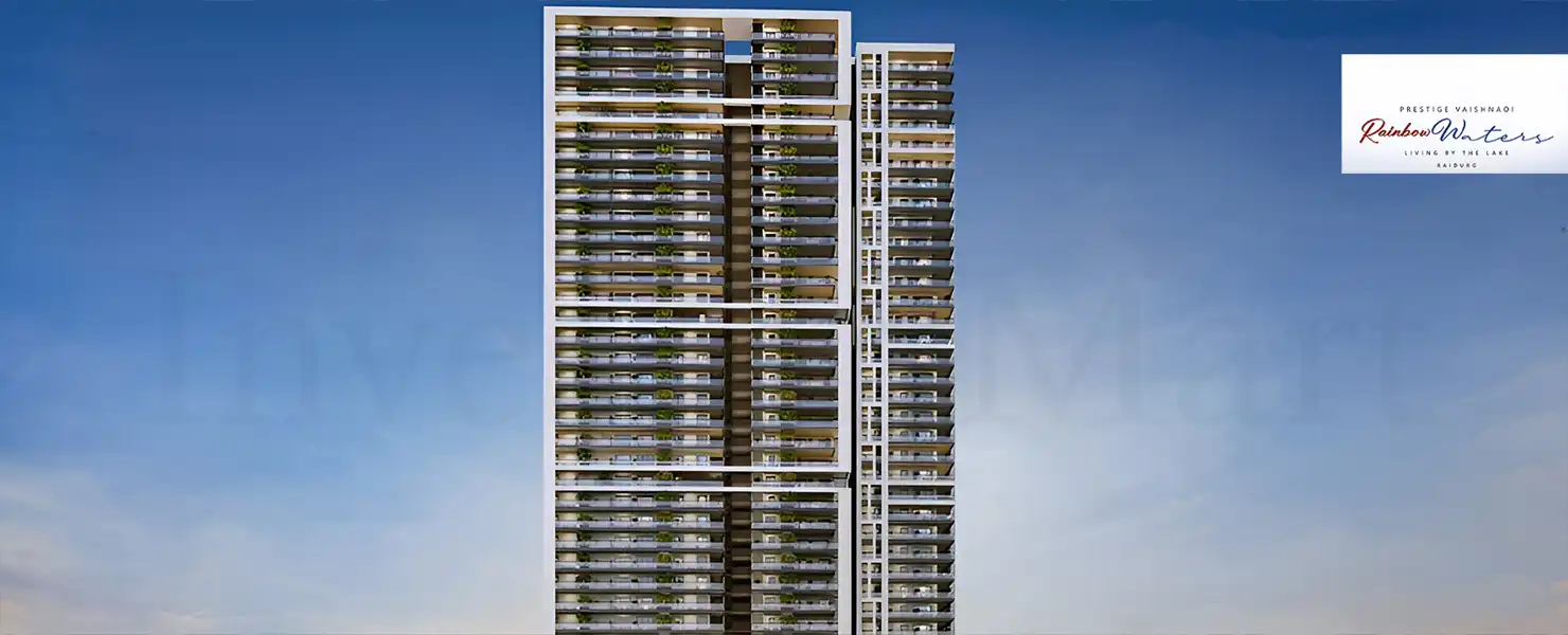 Overview Prestige Vaishnaoi Rainbow Waters The residential project offers premium-lake facing residential properties with 4 and 5 bhk luxurious apartments. The residential project gives you ideal lifestyle developments with a huge area of 2.43 acres. It is with premium lake-facing residential developments at the pristine location of Raidurgam, Gachibowli, Hyderabad. The project adds single well-developed high-rise towers along with double basements, with 5 levels of podium base developments. It adds 36 floors. The residential project offers 150 premium homes along with well-managed planned developments. It adds well-planned interiors and offers large balconies. The project adds high-rise luxurious floors as residential apartments with proximity to multiple project developments that are at the premium location of Raidurgam, Gachibowli, Hyderabad.