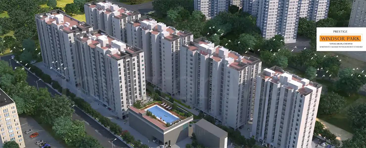 Overview Prestige Windsor Park Your search for affordable residential properties in Chennai will end at Prestige Windsor Park housing project. This upcoming project is based in Vanagaram, which is one of the finest locations in the city to live. Moreover, the project site is blessed by nature and has an eco-friendly environment. The project location is ideal for buying housing properties, as it is based close to facilities like schools, colleges, hospitals, shops, malls, multiplexes, etc. Besides, the project site gives proximity to the railway stations, bus stands, metro projects, airport lines, and highways across the city via road.