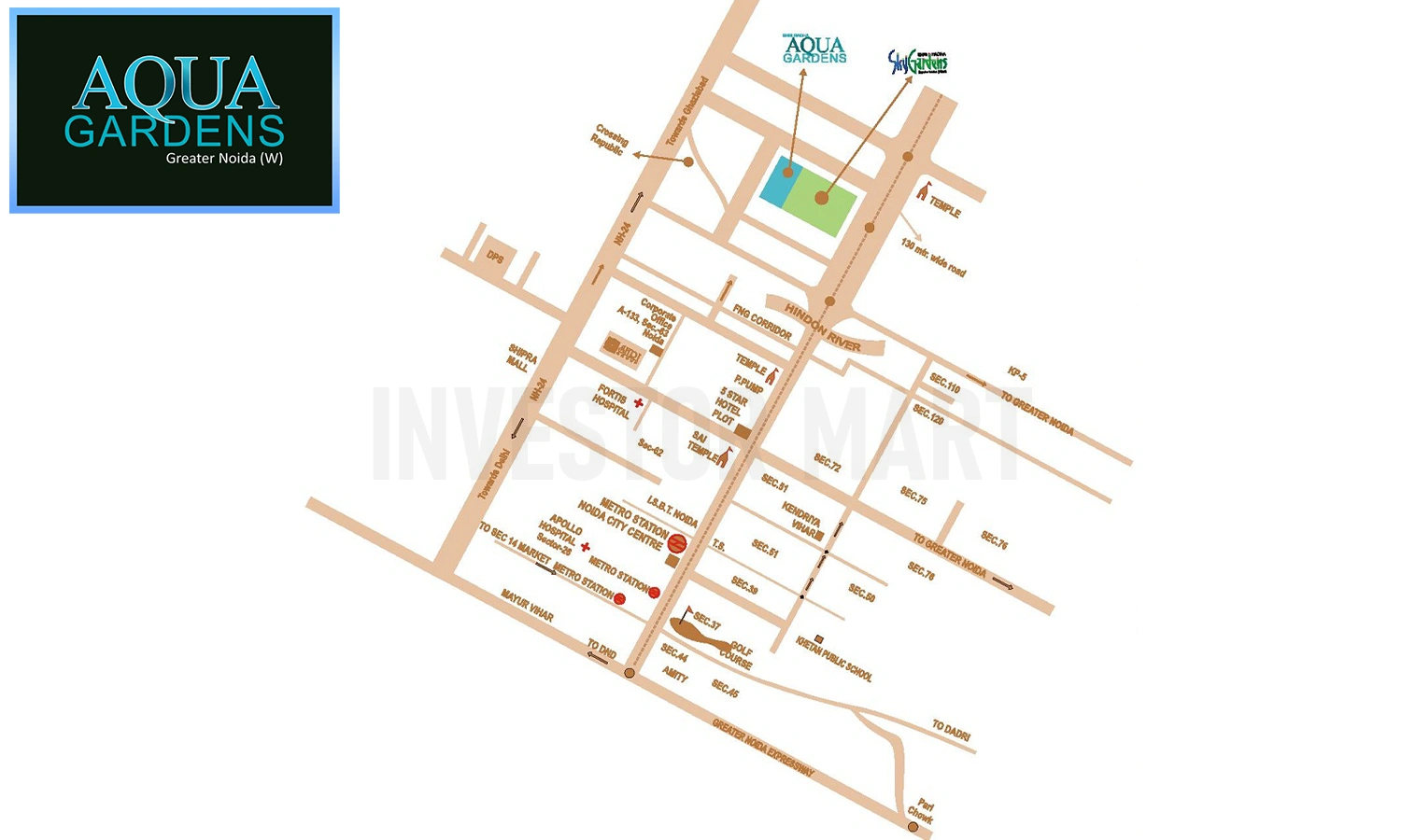 Sri Radha Aqua Gardens is located well connected with Noida, Yamuna and FNG Expressway.