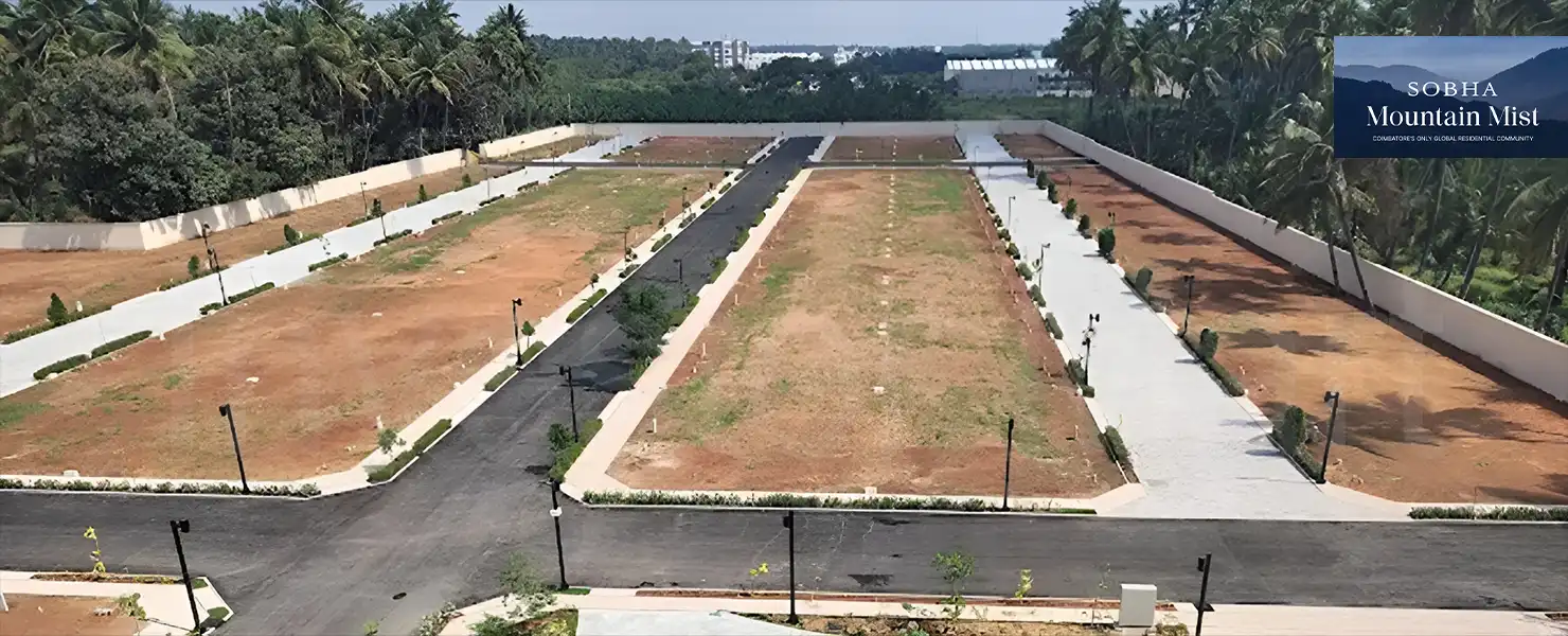 Overview Sobha Mountain Mist If you are looking for residential plots in Coimbatore at affordable prices, your search will end at the Sobha Mountain Mist project. This is a perfectly plotted project to book residential plots that are located at Vedapatti, Coimbatore. The project site is full of greenery around the corner and has good connectivity to the top benefits, such as bus stands, railway stations, airport lines, and highways in the city via road. Moreover, the project location is close to the essential facilities such as hospitals, shops, malls, schools, colleges, restaurants, etc. Hence, this plotted project is a good investment scheme for the buyers.
